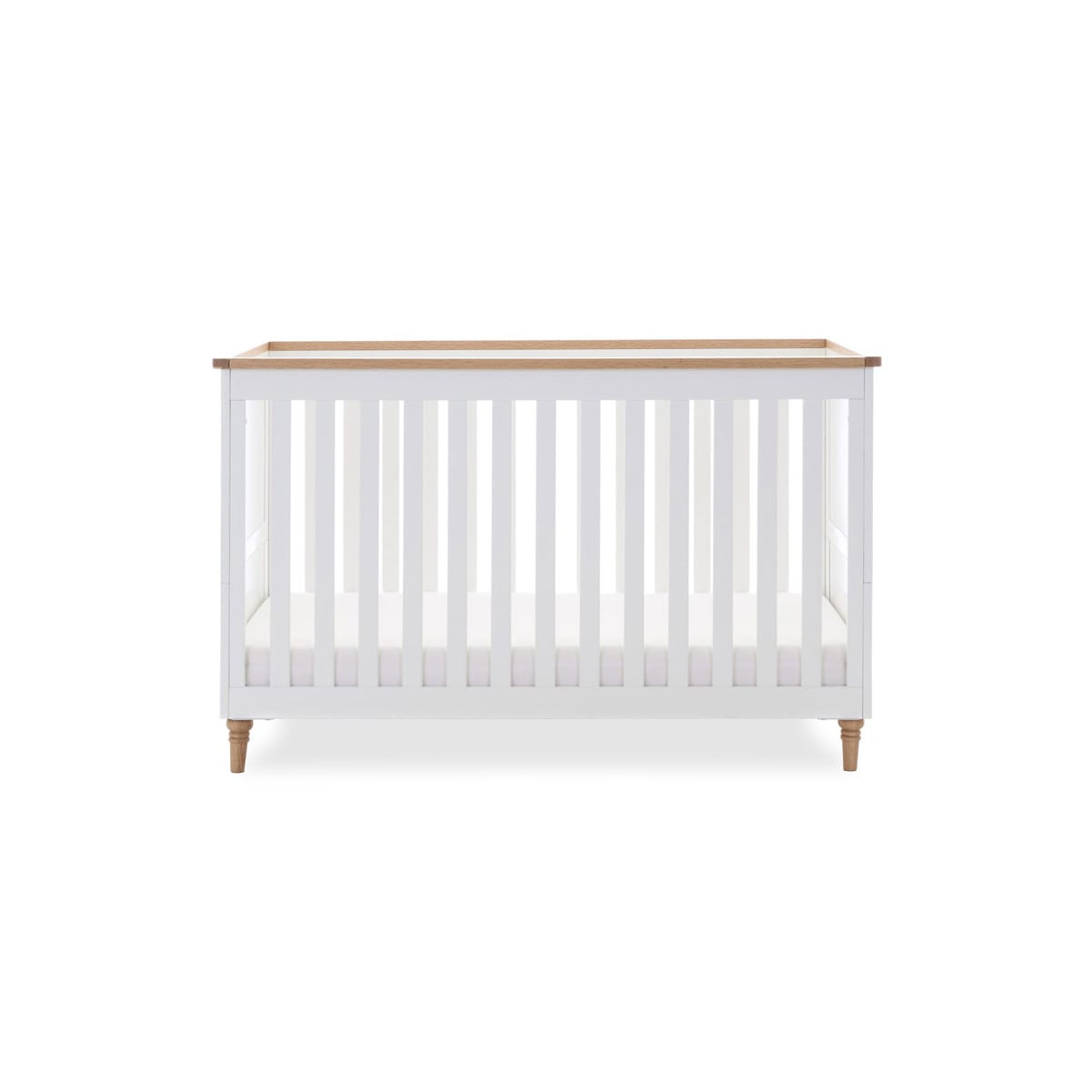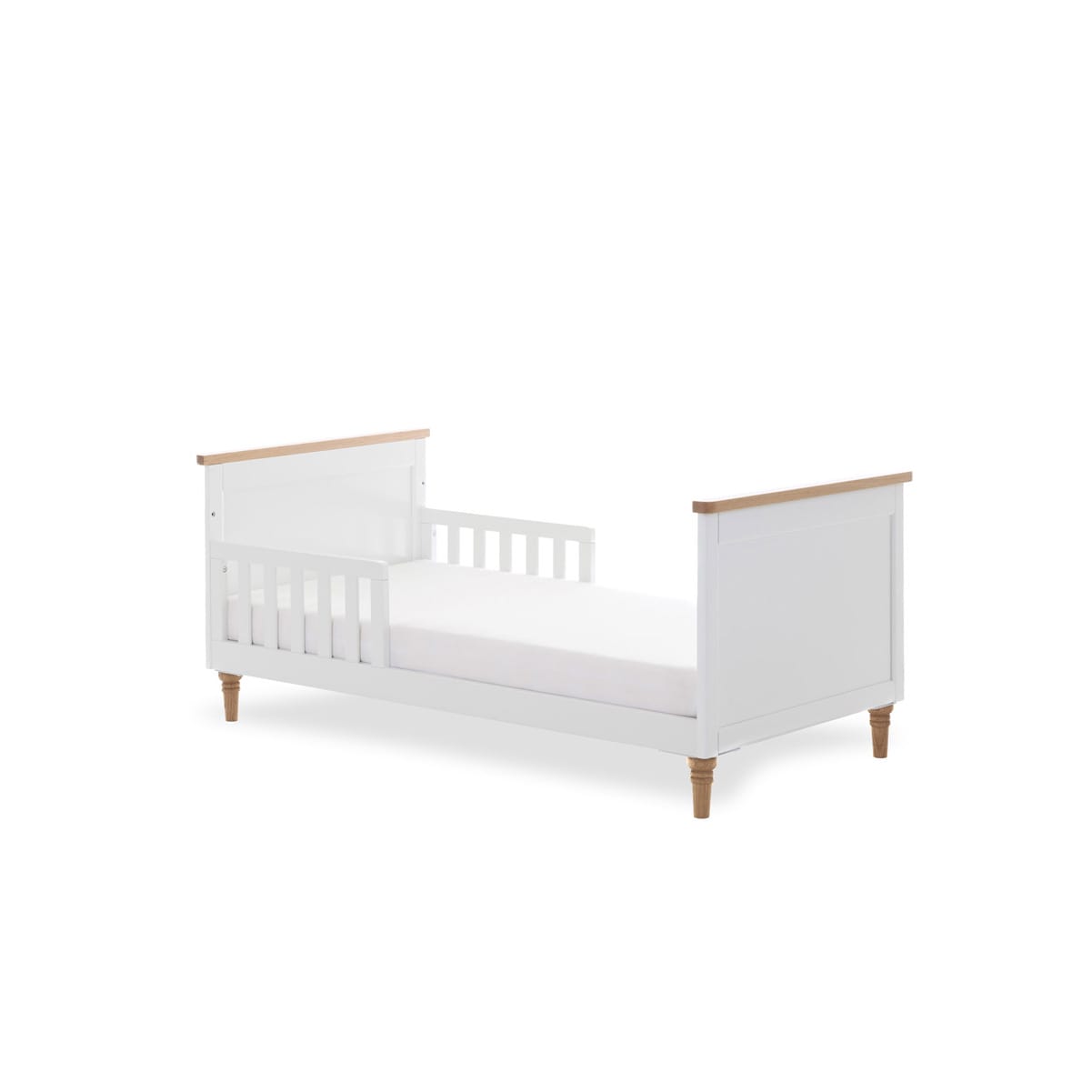 The Orla Cot Bed grows alongside your child from delicate newborn days to cosy toddler years, offering solid oak trim and hand-crafted feet that add an understated luxury to any nursery.