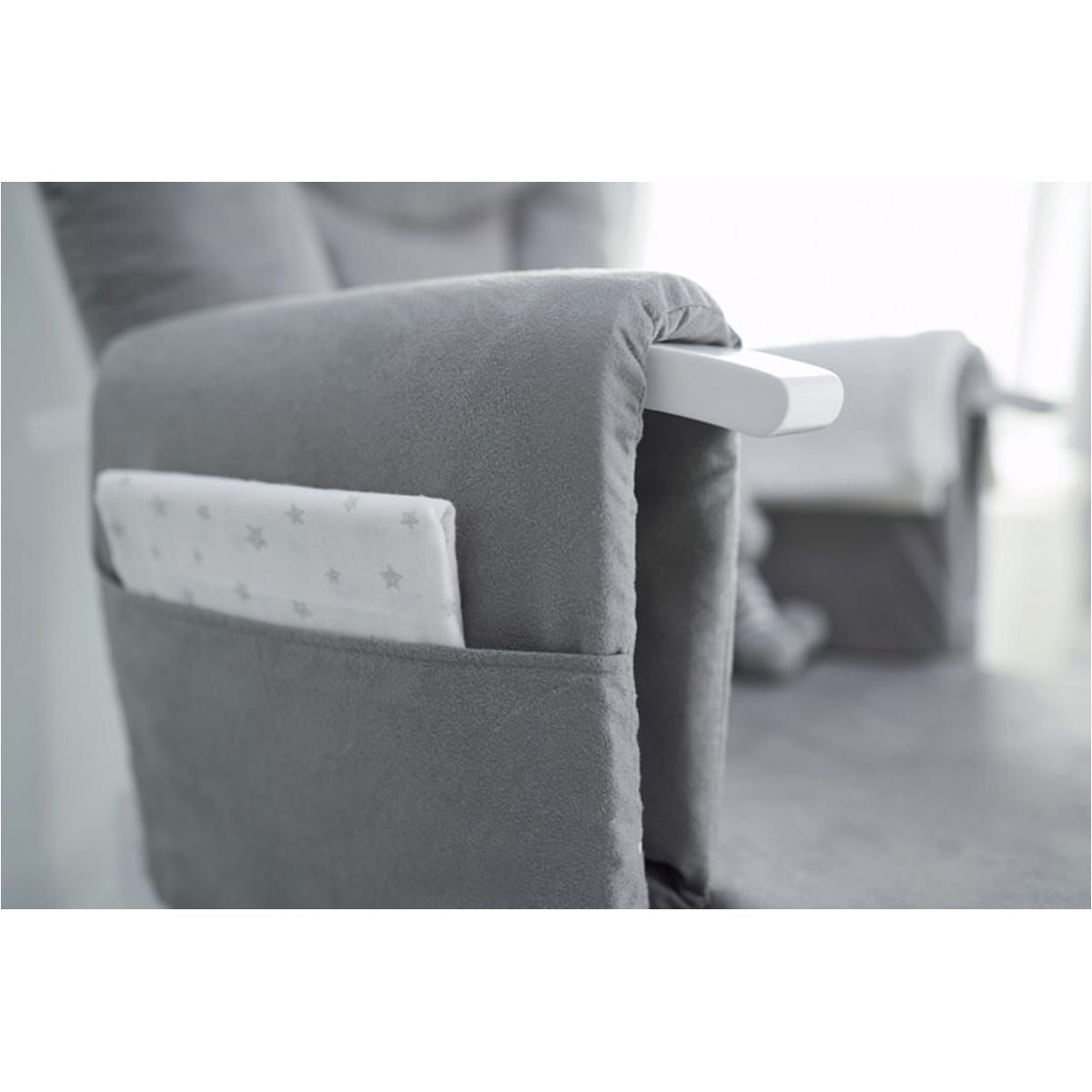 By simply lifting the arm ends, the backrest angle can be effortlessly adjusted by an impressive seven positions so you can always find the right one for you. The comfy back and seat cushions ensure you never want to leave and the padded arm rests each feature a handy storage pocket to keep any important items close to hand. The carefully constructed wooden frame and curved back show off the traditional design while the soft grey tones of the cushions make certain that the chair and stool will coordinate perfectly in any nursery.