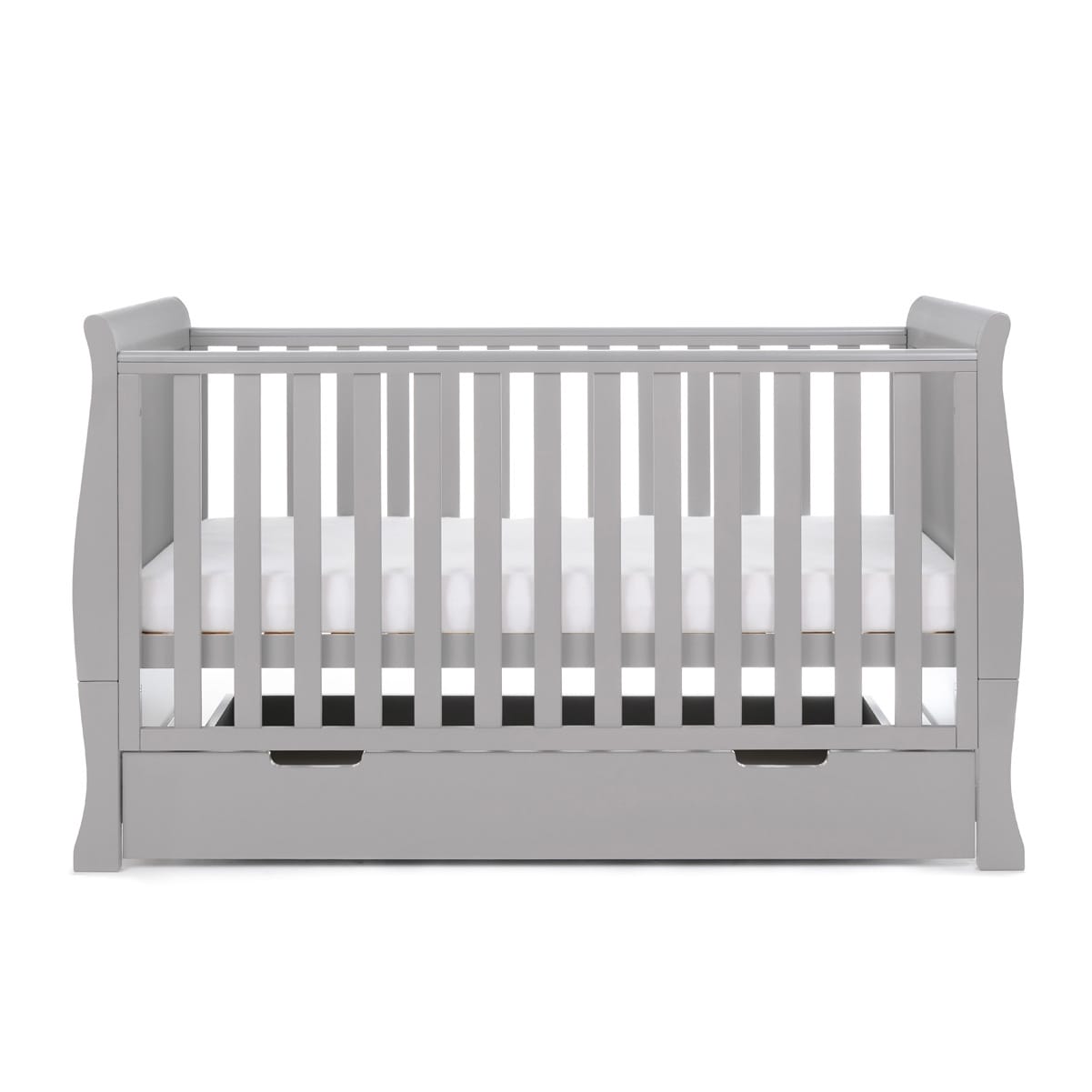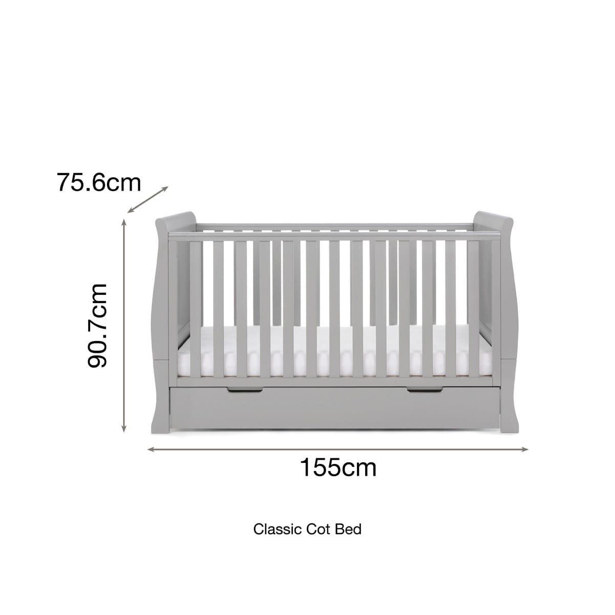 The Obaby Stamford furniture range offers families the perfect combination of style, quality and practicality. The Stamford Classic 2 piece room set consists of the beautiful Stamford Classic cot bed with under drawer and closed changing unit. Both pieces feature the same elegant sleigh design that flows throughout the Stamford range.