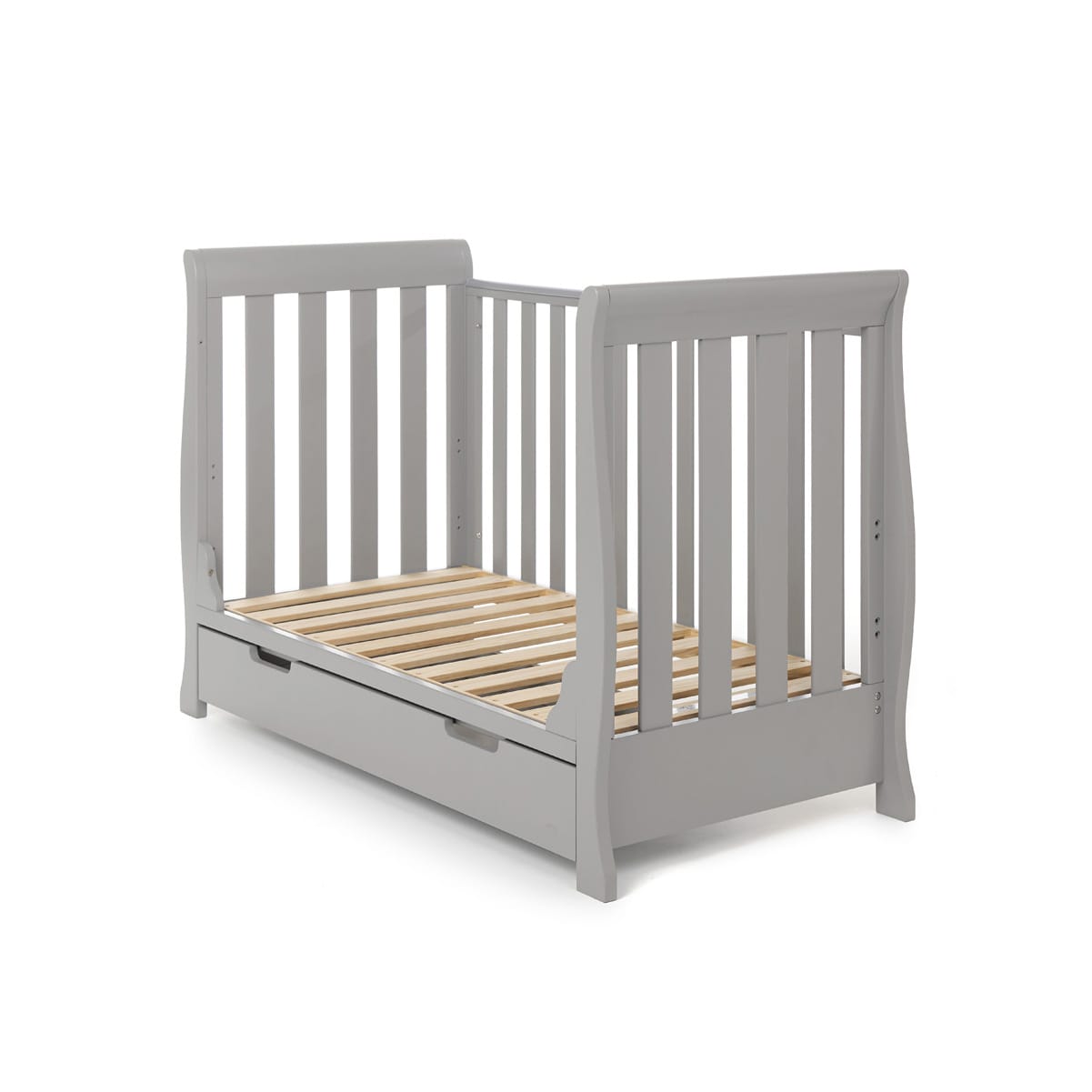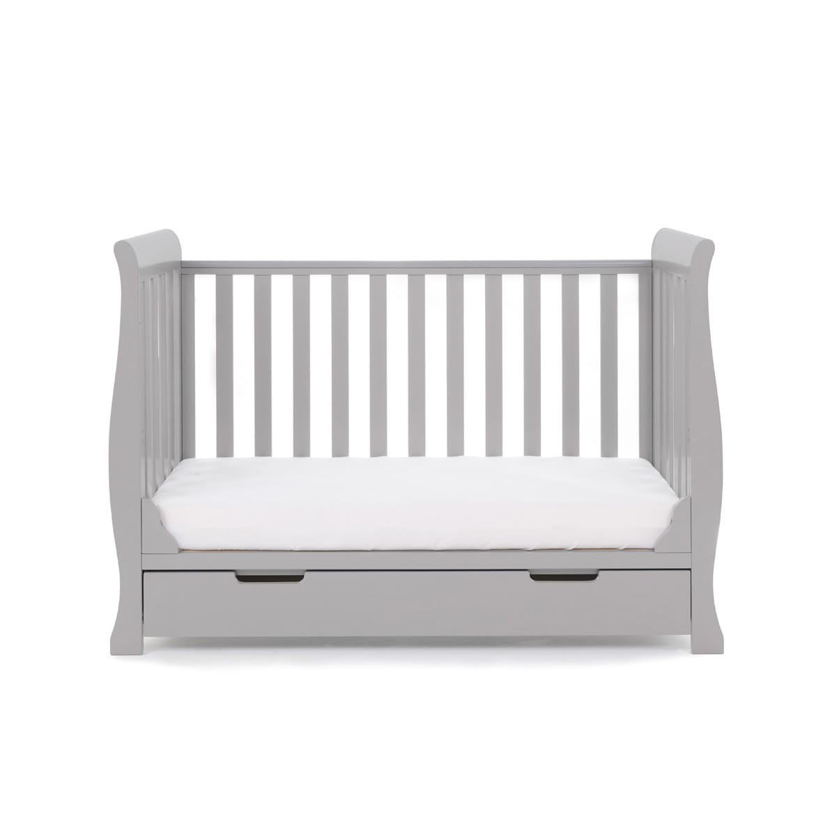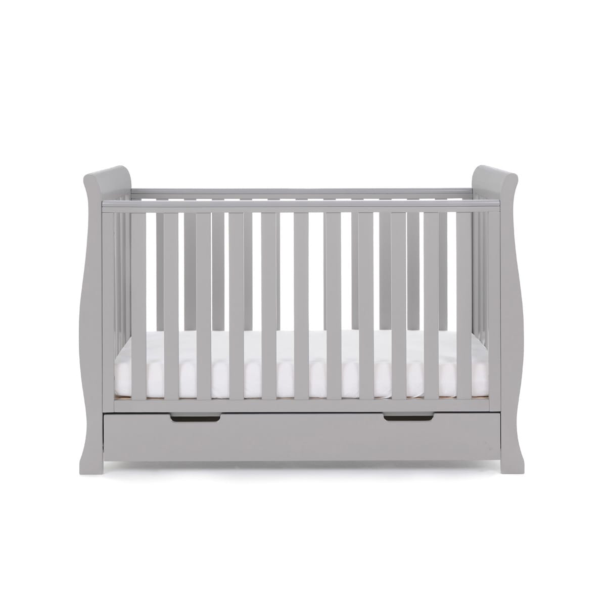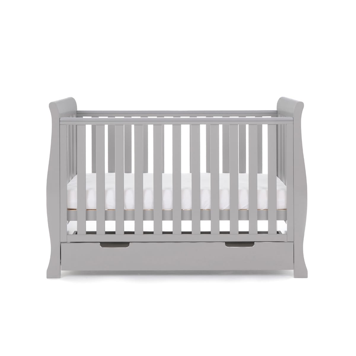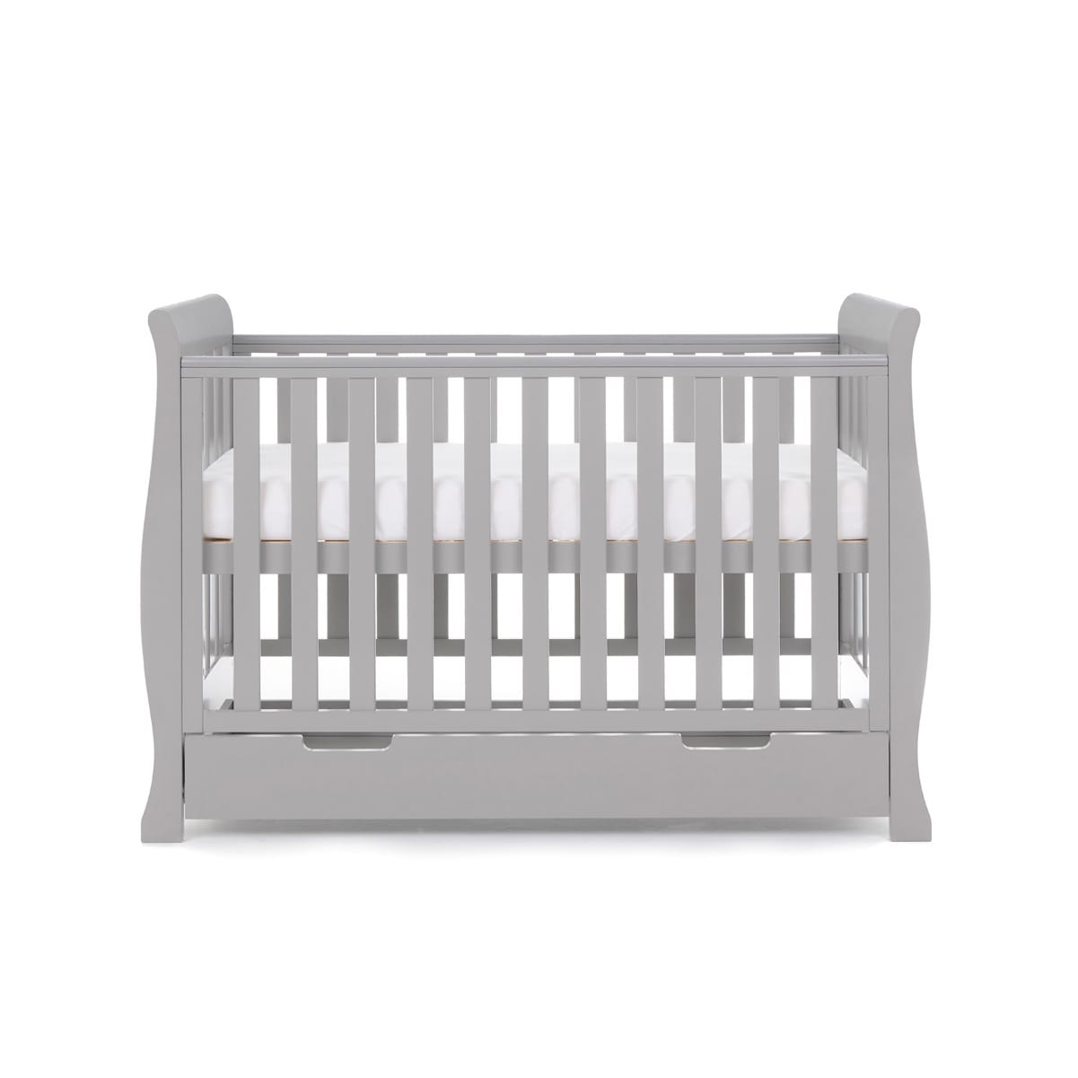 The Obaby Stamford furniture collection offers families the perfect combination of style, quality and practicality. The Stamford Mini 2 piece room set consists of the beautiful Stamford Mini cot bed with under drawer and closed changing unit. Both pieces feature the same elegant sleigh design that flows through the rest of the Stamford collection.