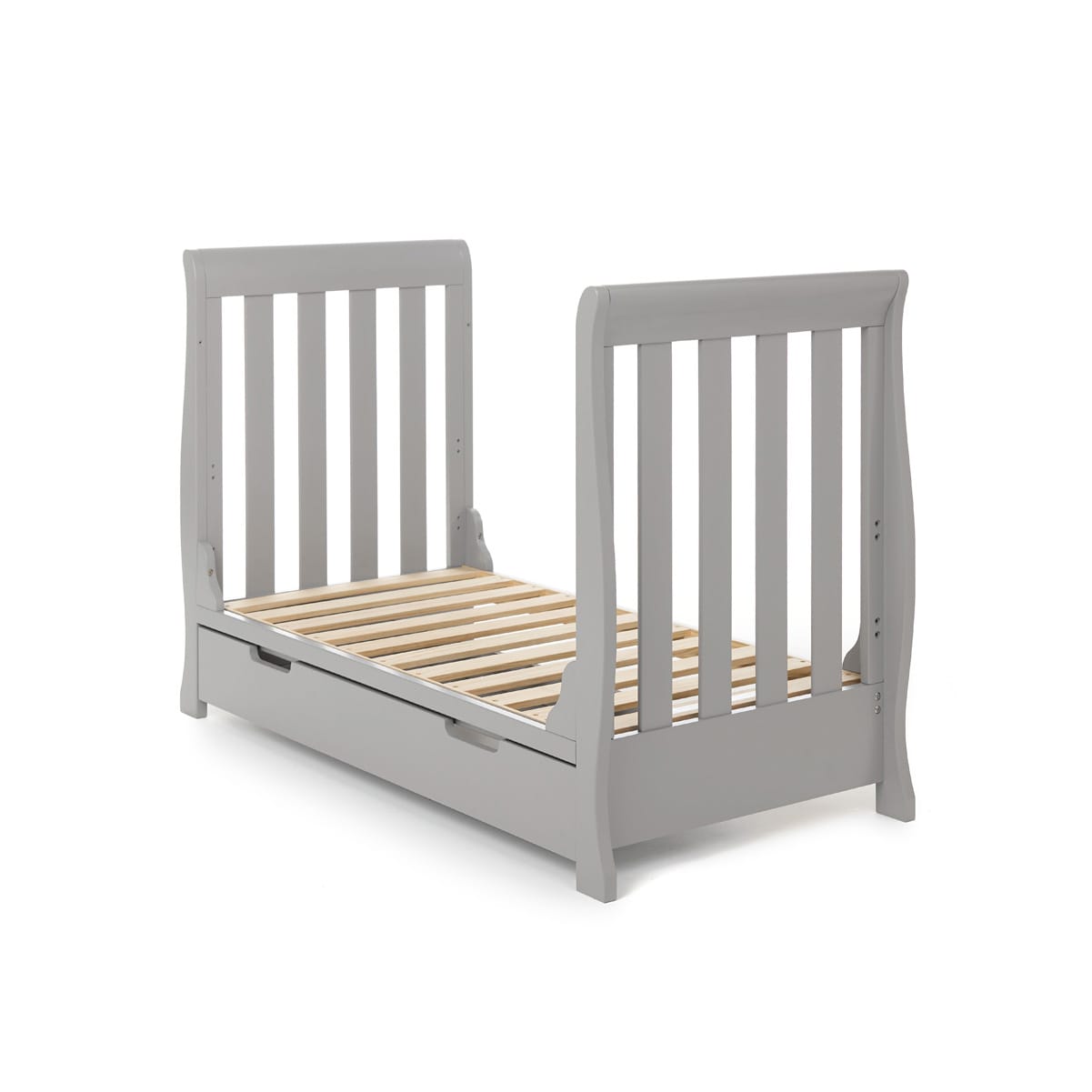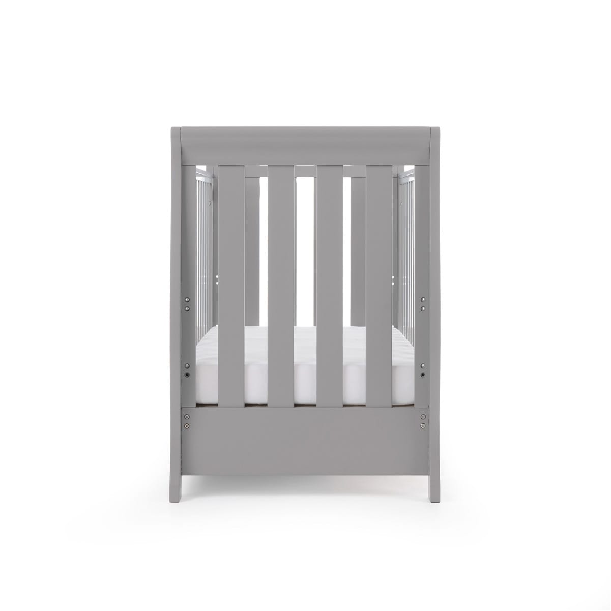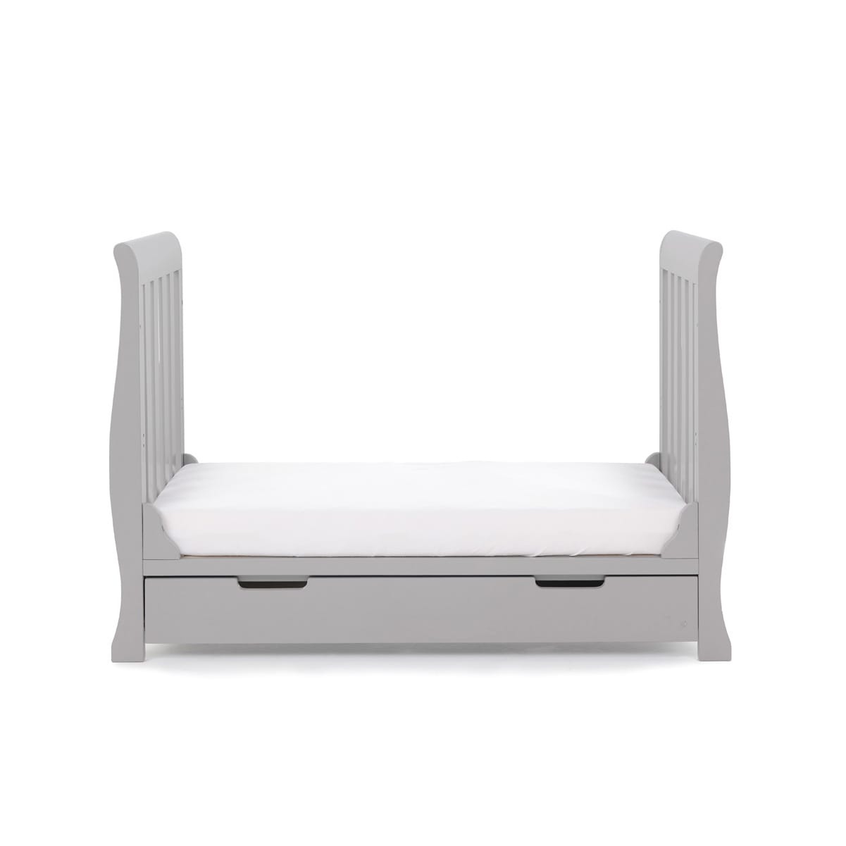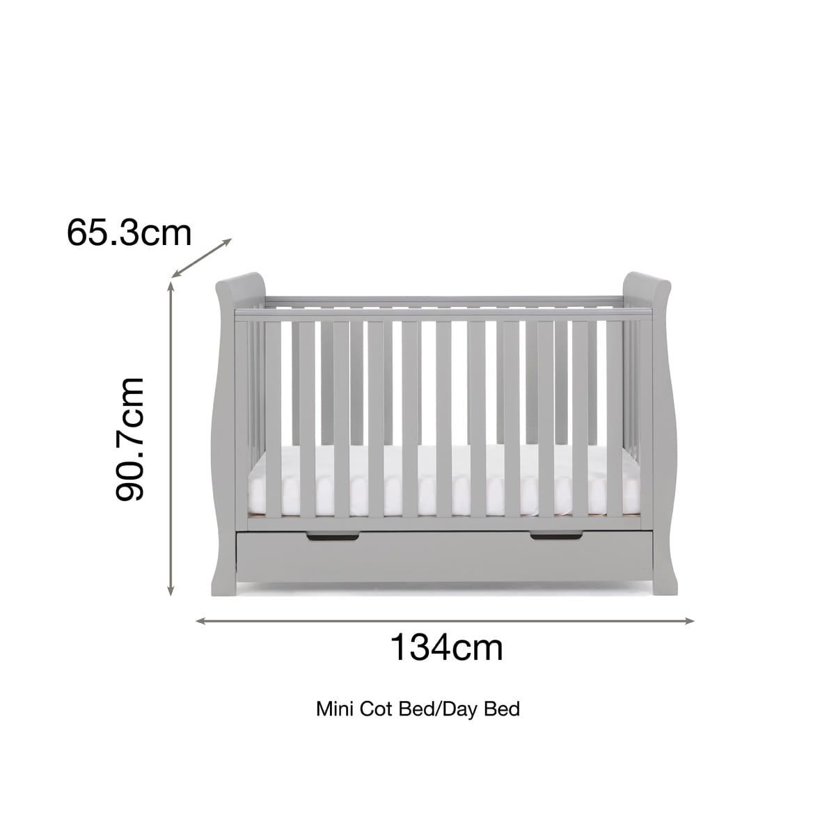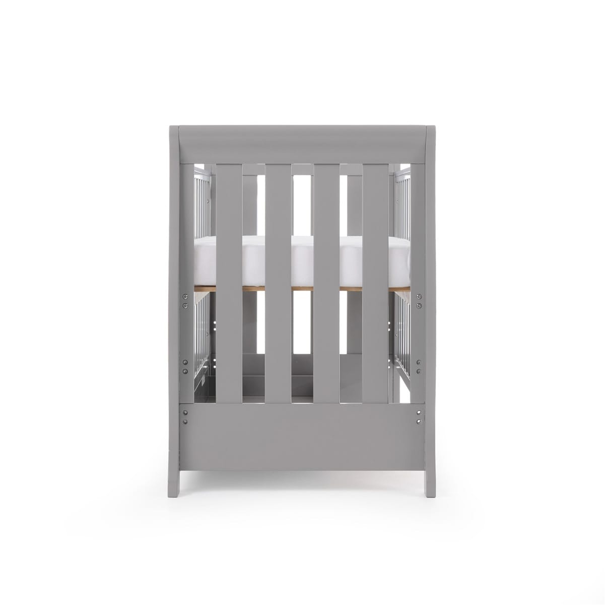 The Obaby Stamford furniture collection offers families the perfect combination of style, quality and practicality. The Stamford Mini 2 piece room set consists of the beautiful Stamford Mini cot bed with under drawer and closed changing unit. Both pieces feature the same elegant sleigh design that flows through the rest of the Stamford collection.