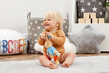 Playtime with Peter Rabbit! There’s plenty of fun and games to be had with the fun-packed Peter Rabbit Activity Toy. Designed to stimulate baby’s senses and encourage early sensory development, this super soft toy rattles and squeaks as baby plays, and features an attached teether, crinkle-sound fabric, different textures and silky tags for little fingers to explore. Complete with a handy clip hook to attach to bags, buggies and cots, the Peter Rabbit Activity Toy will keep your baby busy when you’re on the go, and is the perfect companion for adventure-filled days!