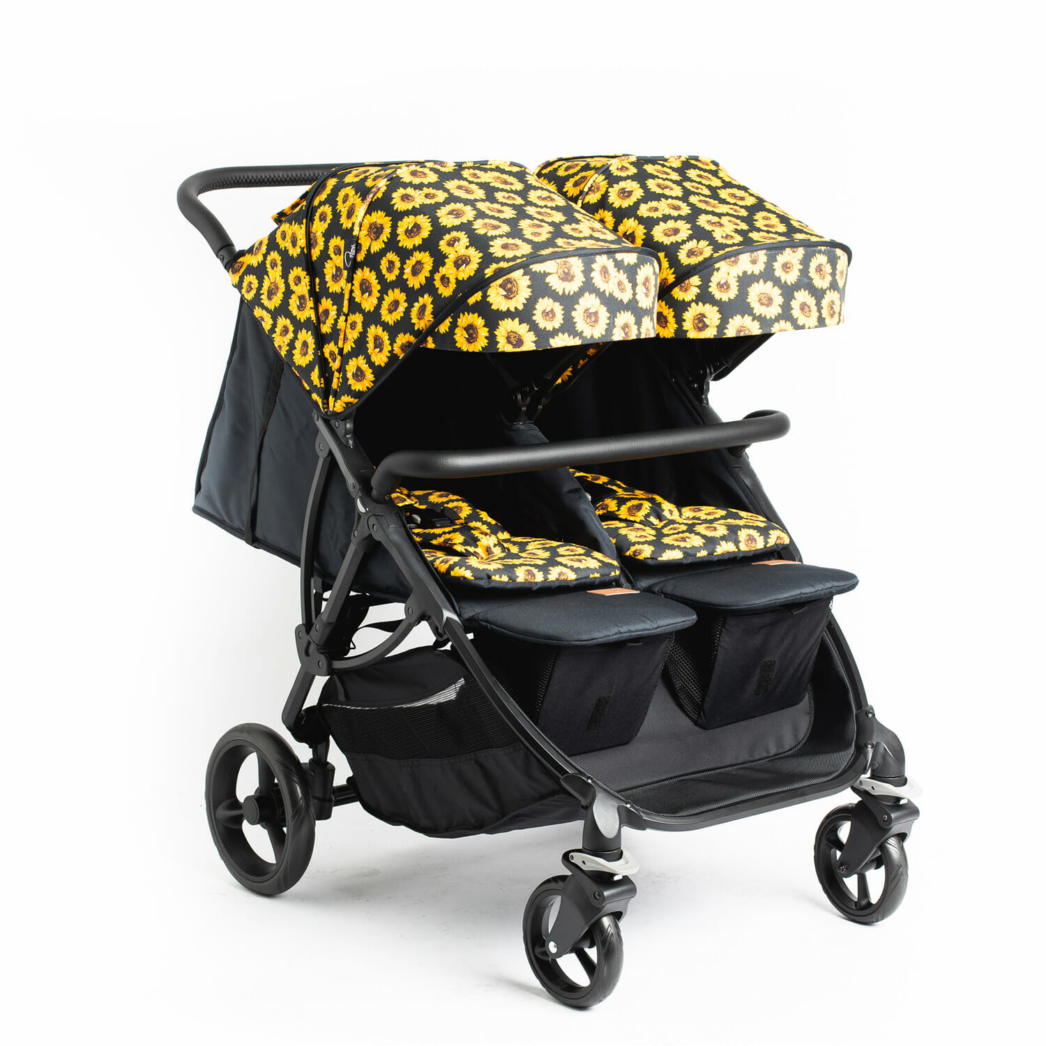The Roma Gemini Double Stroller Sunflower is 15kgs and only 69cms wide, with two comfortable spacious seats. The Gemini offers a smooth and comfy ride with a stylish finish.
