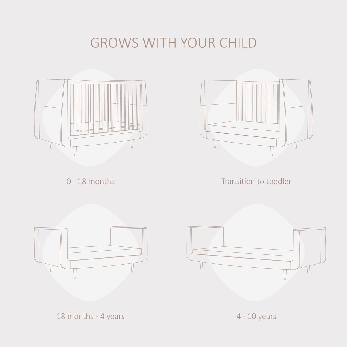 Grows with them – easily converts to a toddler & junior bed, for up to 10 years, with a separate extension kit.