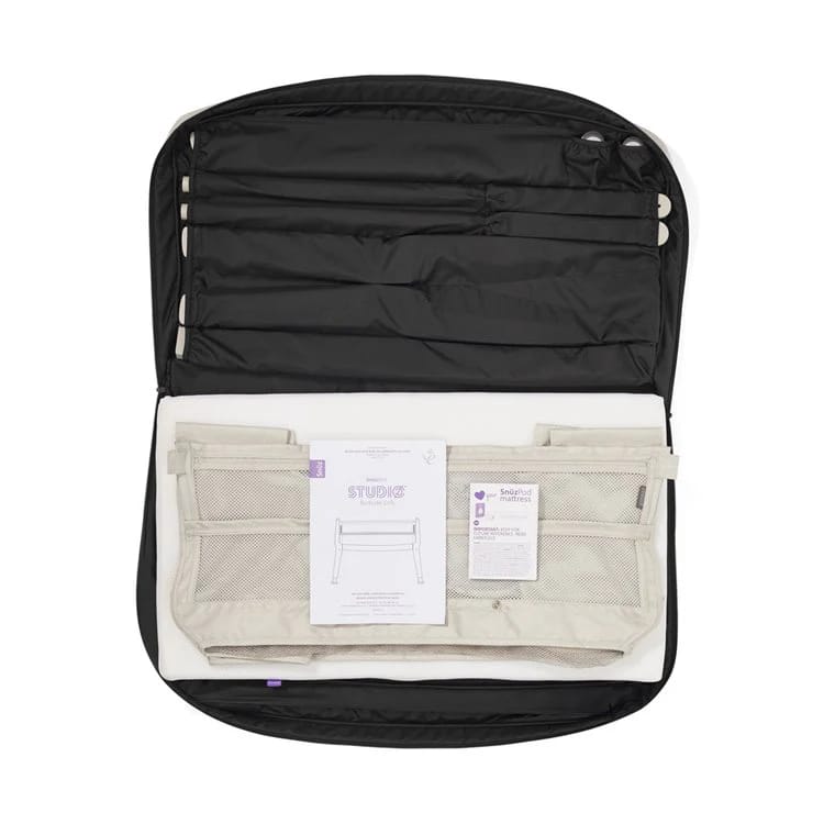 Ready, set, go: Easily transport your SnuzPod Studio & bring baby’s first bed along for the journey.