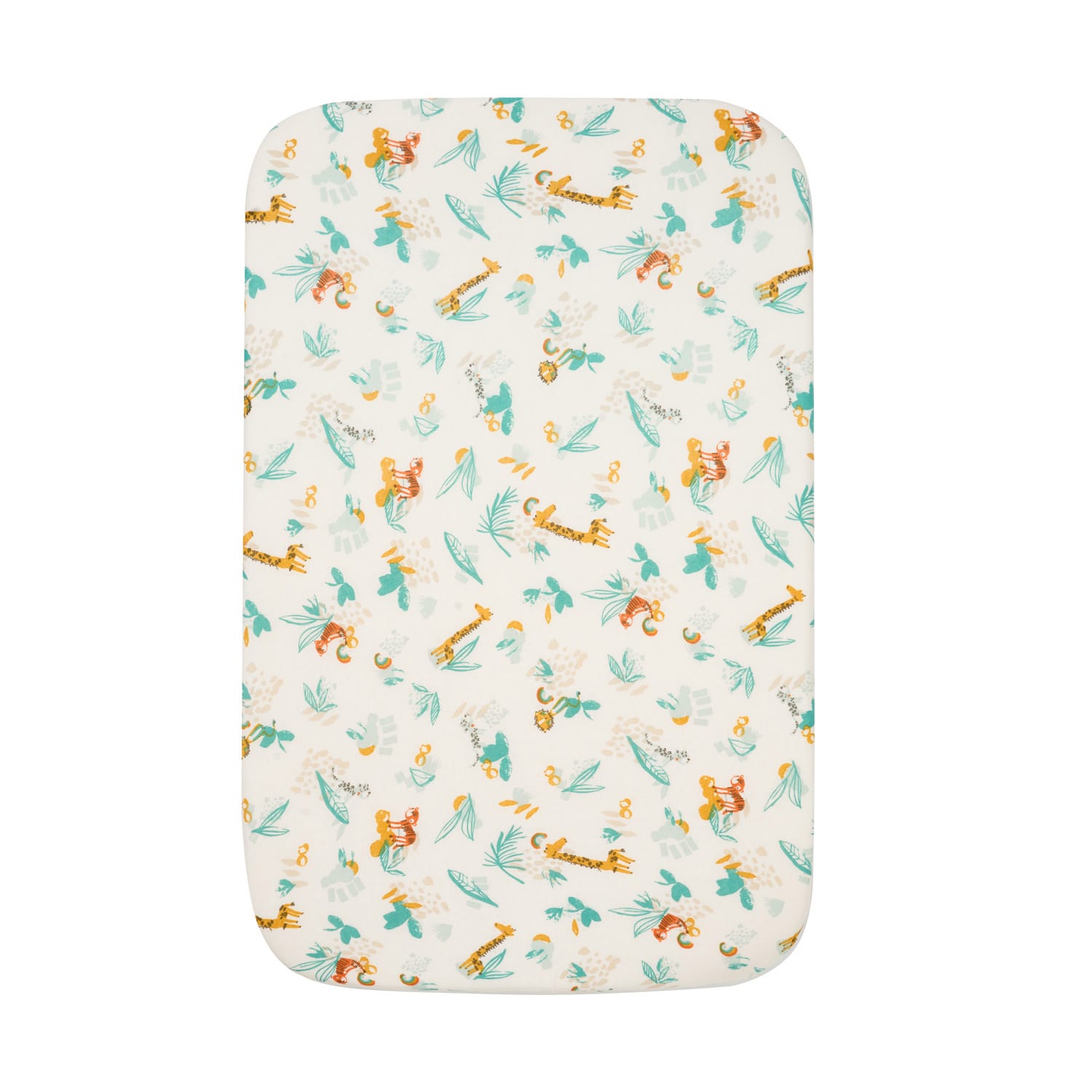 We welcome you to the jungle with our Run Wild collection featuring jungle motifs in our fresh and fun colour palette of contemporary golds and greens. As part of this collection our bedside crib fitted sheets are sold as a two pack with two different stylish designs to carry on the aesthetic of the collection. Mix and match with other items to get the full look.