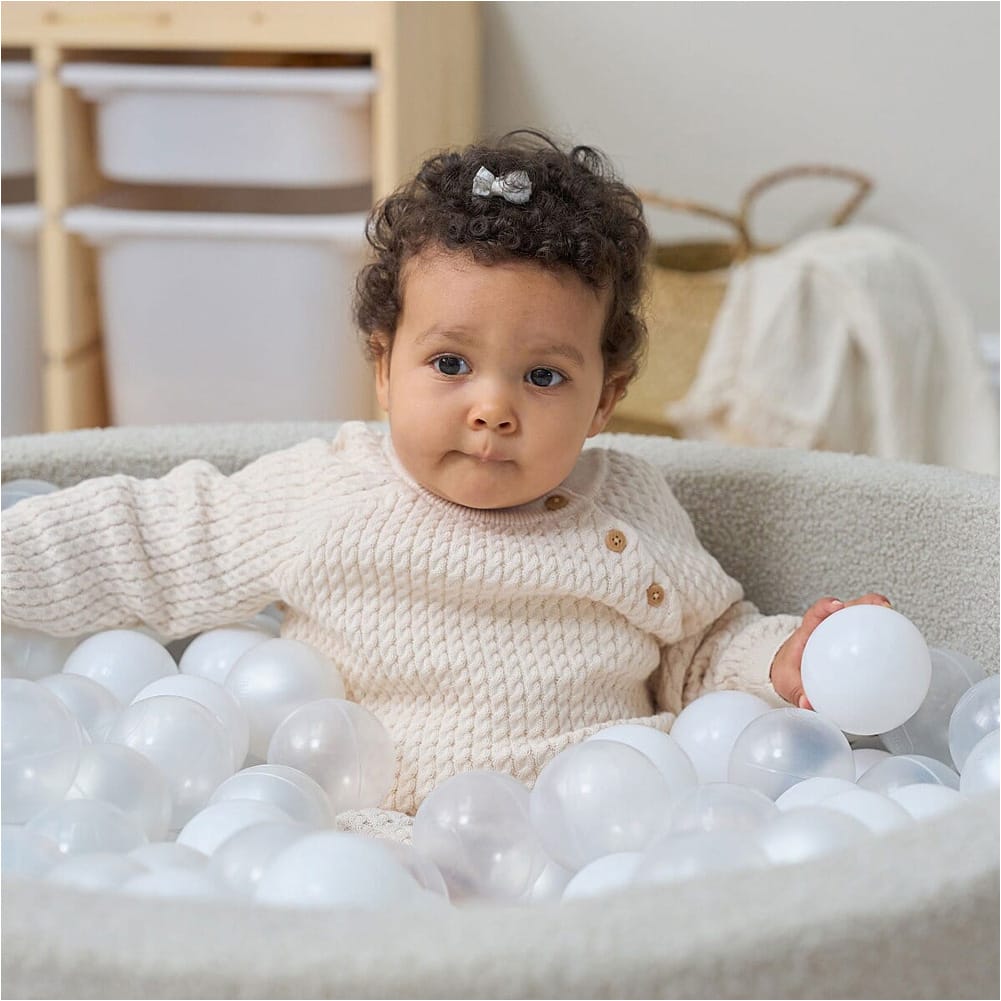 Introduce your child to a world of cosy, sensory-rich play with our luxurious Bola Baby Ball Pit! Crafted with foam edges for enhanced safety and covered in ultra-soft boucle fabric, it offers a secure space for endless fun. The 200 included balls are perfectly sized for little hands, encouraging motor skill development, grip strength, and hand-eye coordination. Designed for both comfort and creativity, this ball pit provides a perfect environment for your little one’s playful exploration and growth.