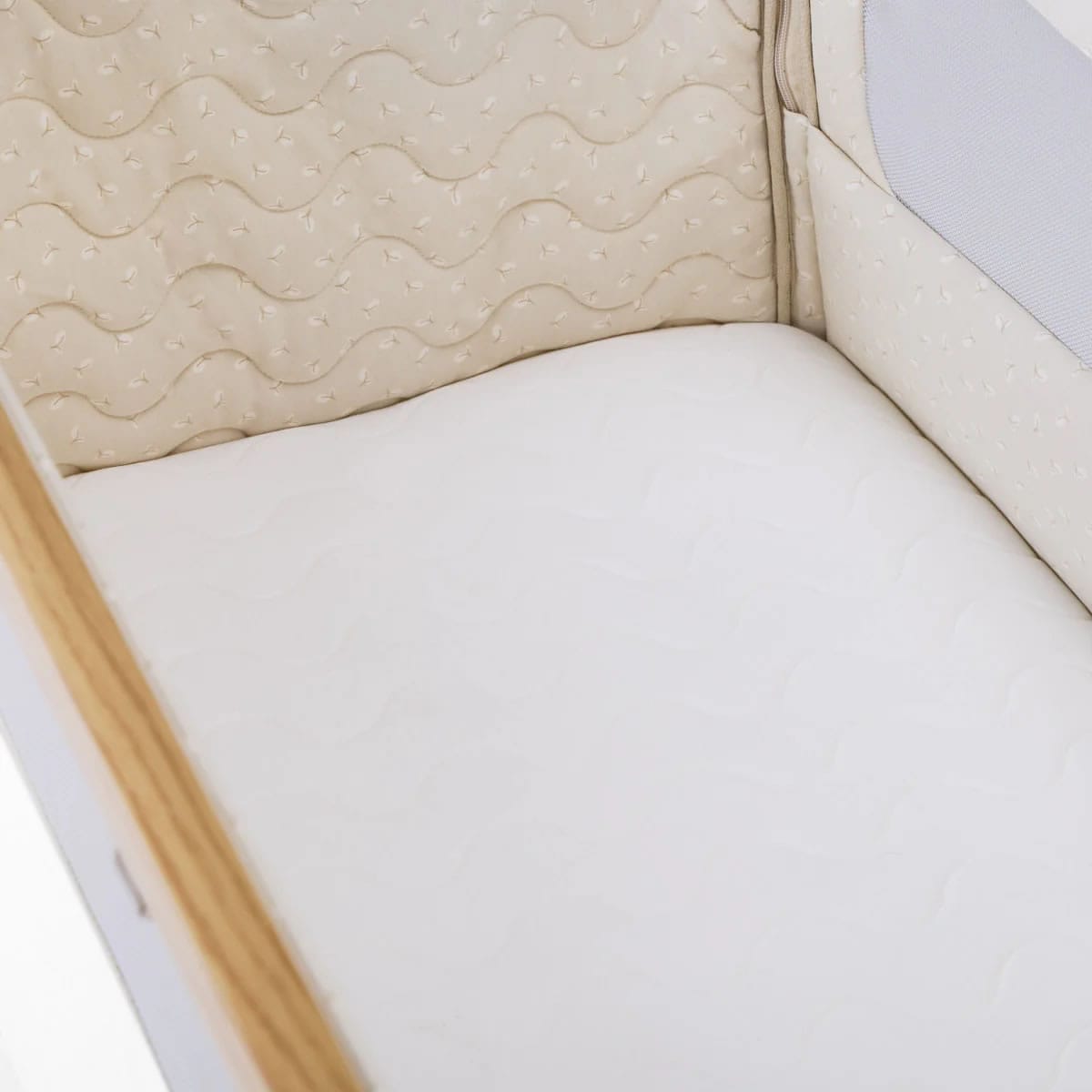 The CoZee® Air 2 Bedside Crib combines beautifully tailored design with thoughtful functionality, creating a calm and comfortable sleep space from day one. Its refined finish, quilted lining and mattress cover bring a sense of luxury, while hidden ventilation holes in the side barrier maintain breathability throughout the night.