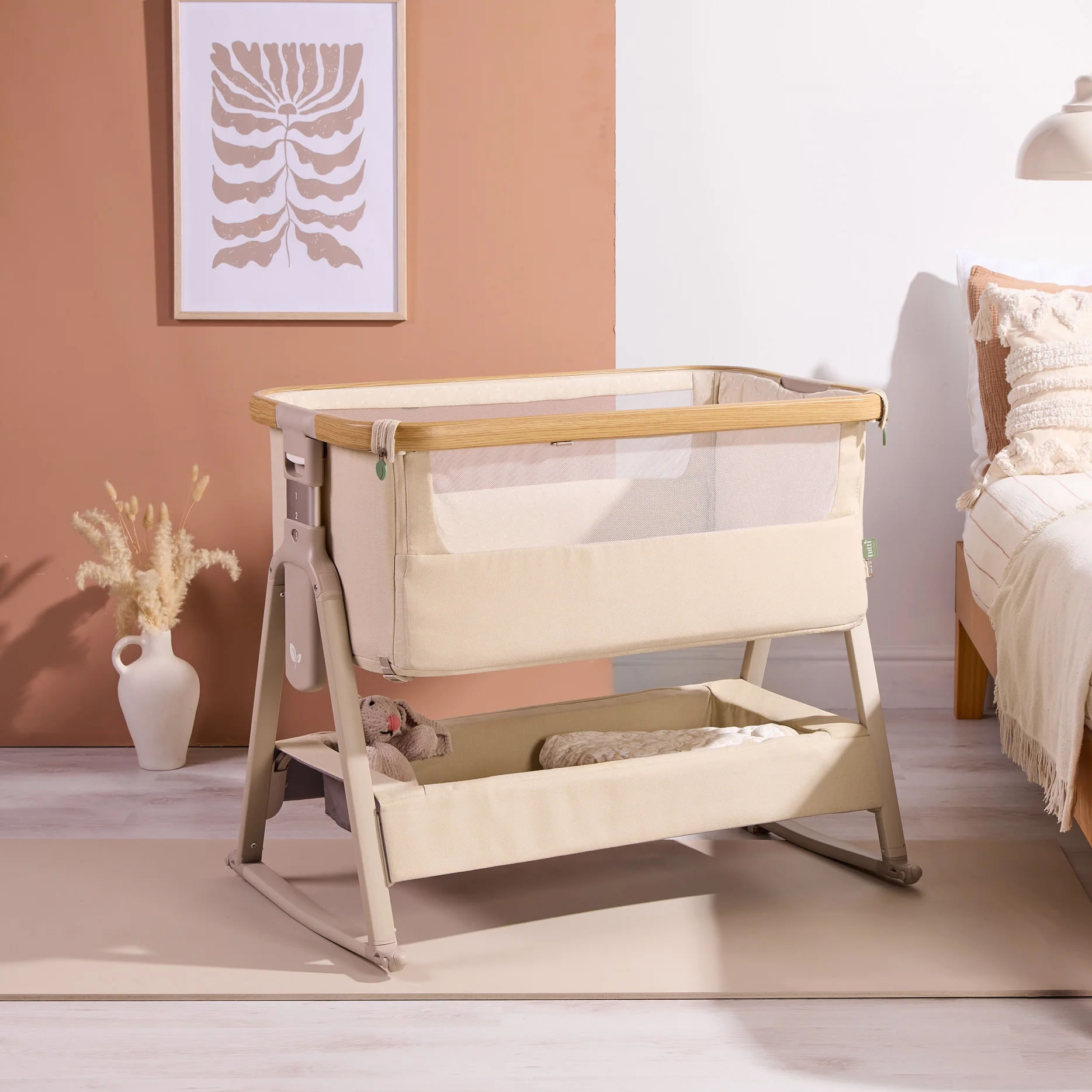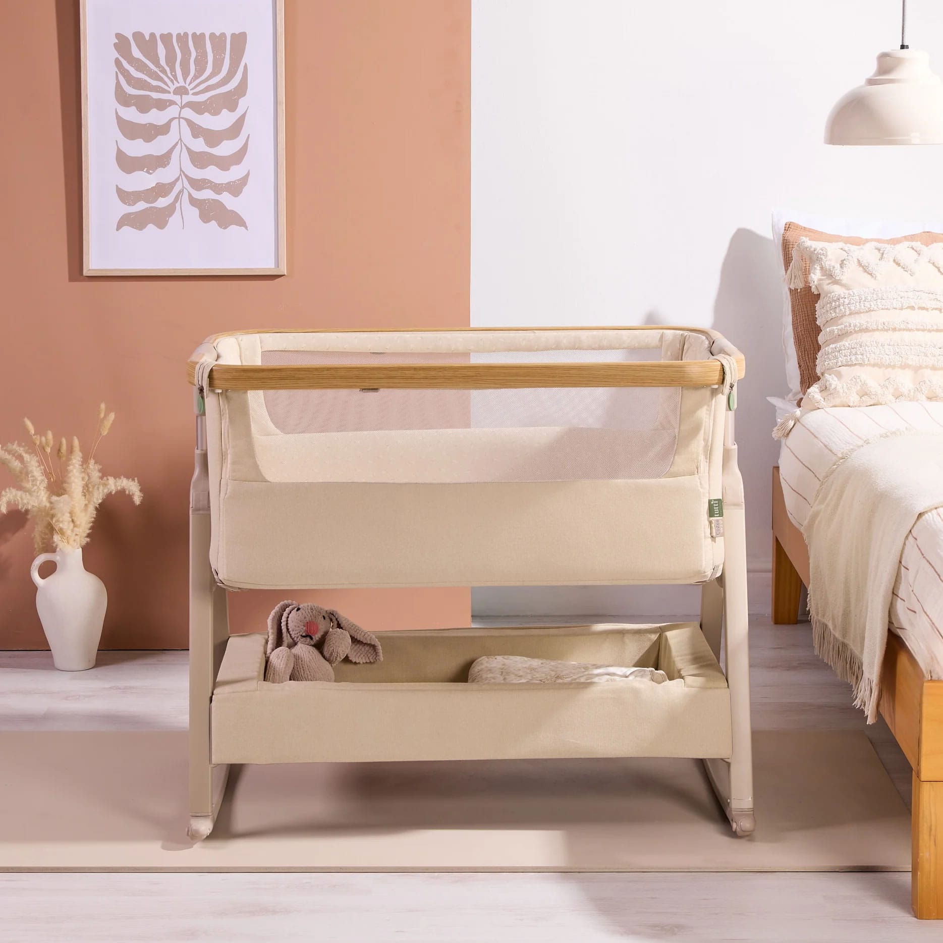 Tutti Bambini CoZee Air 2 Bedside Crib – Toasted Oak/Sand