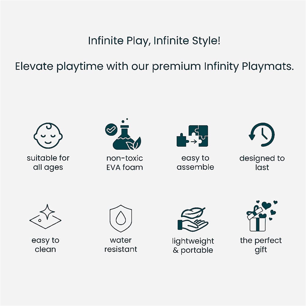 Create a soft and stylish play space with the Infinity Baby Playmat. This deluxe interlocking mat is made from high-quality, non-toxic EVA foam, providing a cushioned, anti-slip surface that’s perfect for all ages. Its subtle tones add a touch of modern elegance to your home while offering a safe and comfortable area for your little one to play and grow. Easy to assemble, clean, and store, this playmat is designed for convenience and endless fun. Expand your play area with extra Infinity playmat sets, or you can even mix them with other Tutti Bambini designs for a customised space full of fun and creativity.