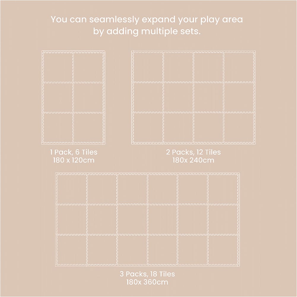 Create a soft and stylish play space with the Infinity Baby Playmat. This deluxe interlocking mat is made from high-quality, non-toxic EVA foam, providing a cushioned, anti-slip surface that’s perfect for all ages. Its subtle tones add a touch of modern elegance to your home while offering a safe and comfortable area for your little one to play and grow. Easy to assemble, clean, and store, this playmat is designed for convenience and endless fun. Expand your play area with extra Infinity playmat sets, or you can even mix them with other Tutti Bambini designs for a customised space full of fun and creativity.