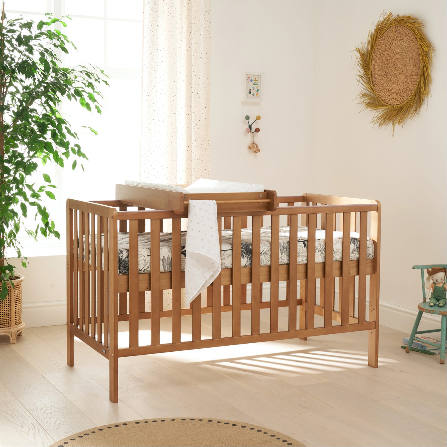 Malmo is a modern Scandinavian-inspired Cot Bed complete with matching Cot Top Changer and Mattress. This practical, natural looking Honey Oak coloured cot bed converts to a junior bed and sofa, offering all your nursery essentials in one affordable and stylish package.