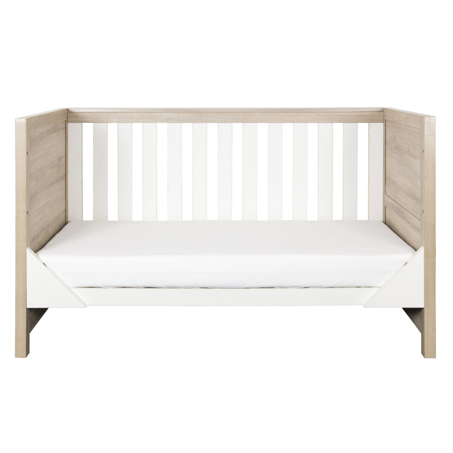 The Modena 2-Piece Set blends quiet style with everyday practicality. Its 3-in-1 cot bed transforms into a toddler bed and sofa, while the chest changer includes a removable top for when nappies are a thing of the past. Finished in clean White and Oak with a relaxed, coastal feel — it’s made for real homes — the cuddles, the chaos, and everything in between.
