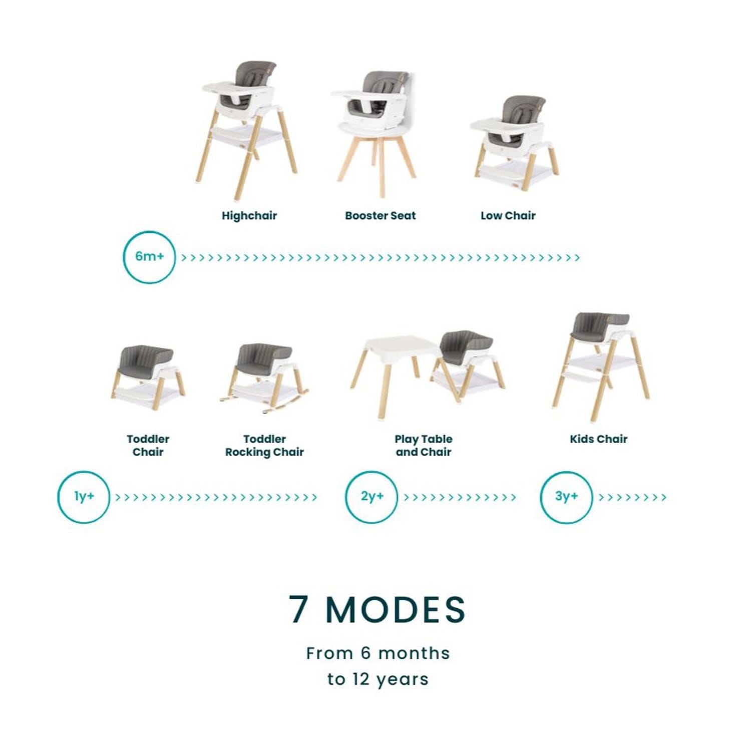 The Tutti Bambini Nova Highchair is a versatile, evolutionary highchair that grows with your child, offering 7 modes from highchair to play table. Ergonomically designed with padded, stain-resistant Nanotex fabrics, it ensures comfort and easy cleaning. Compact and travel-friendly, it folds in just 60 seconds with a carry case included. Pair with the Nova Rocker to unlock 4 additional modes, perfect for newborns.