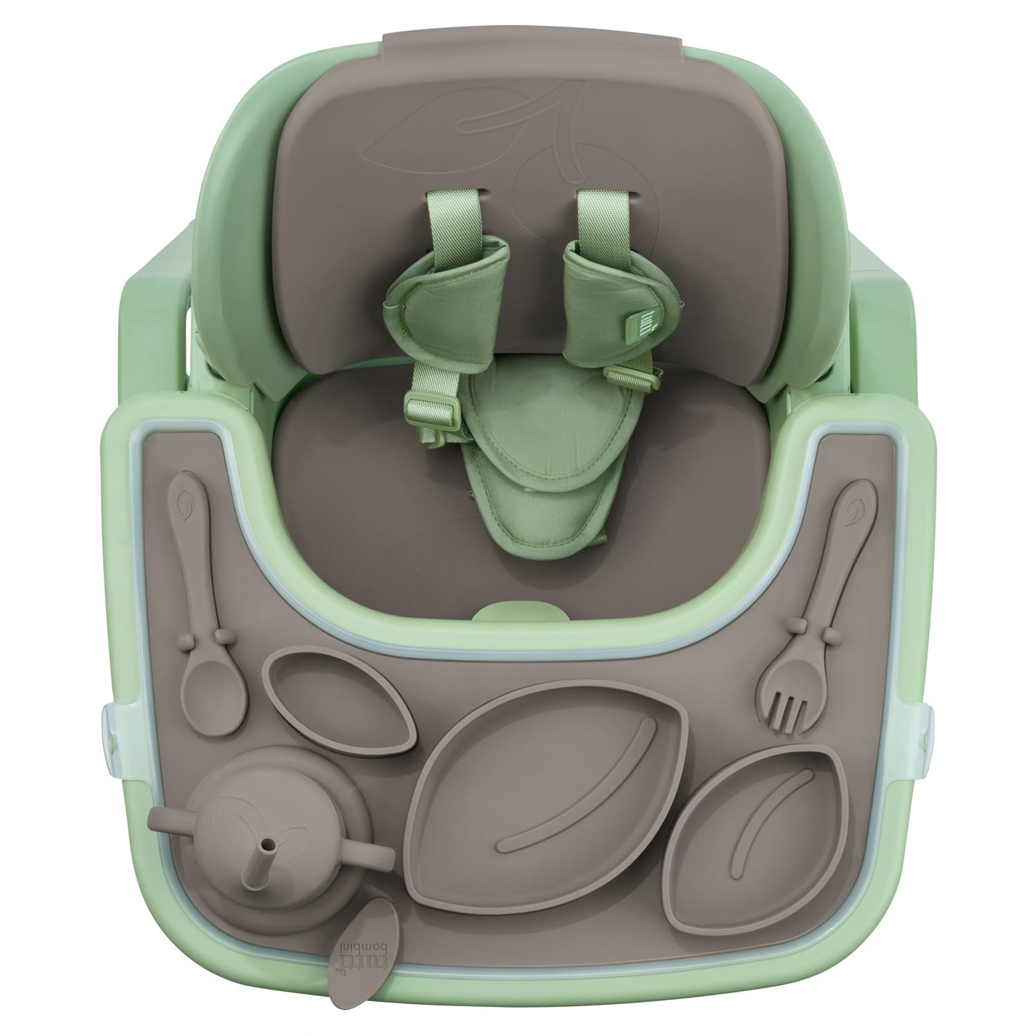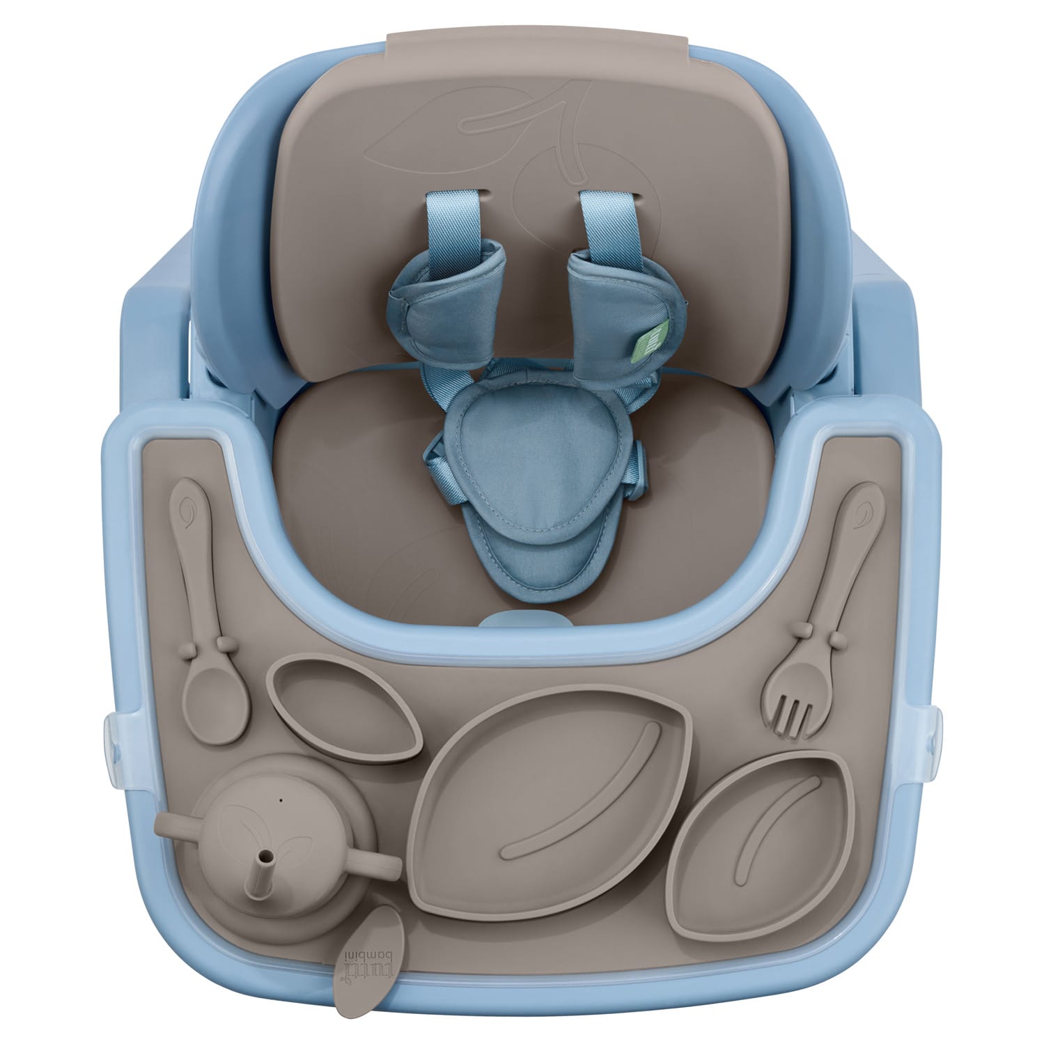 What’s Included: 10-piece silicone essentials set including seat insert, backrest insert, tray, sippy cup, three nesting bowls, fork, spoon, and easy-clean bib.