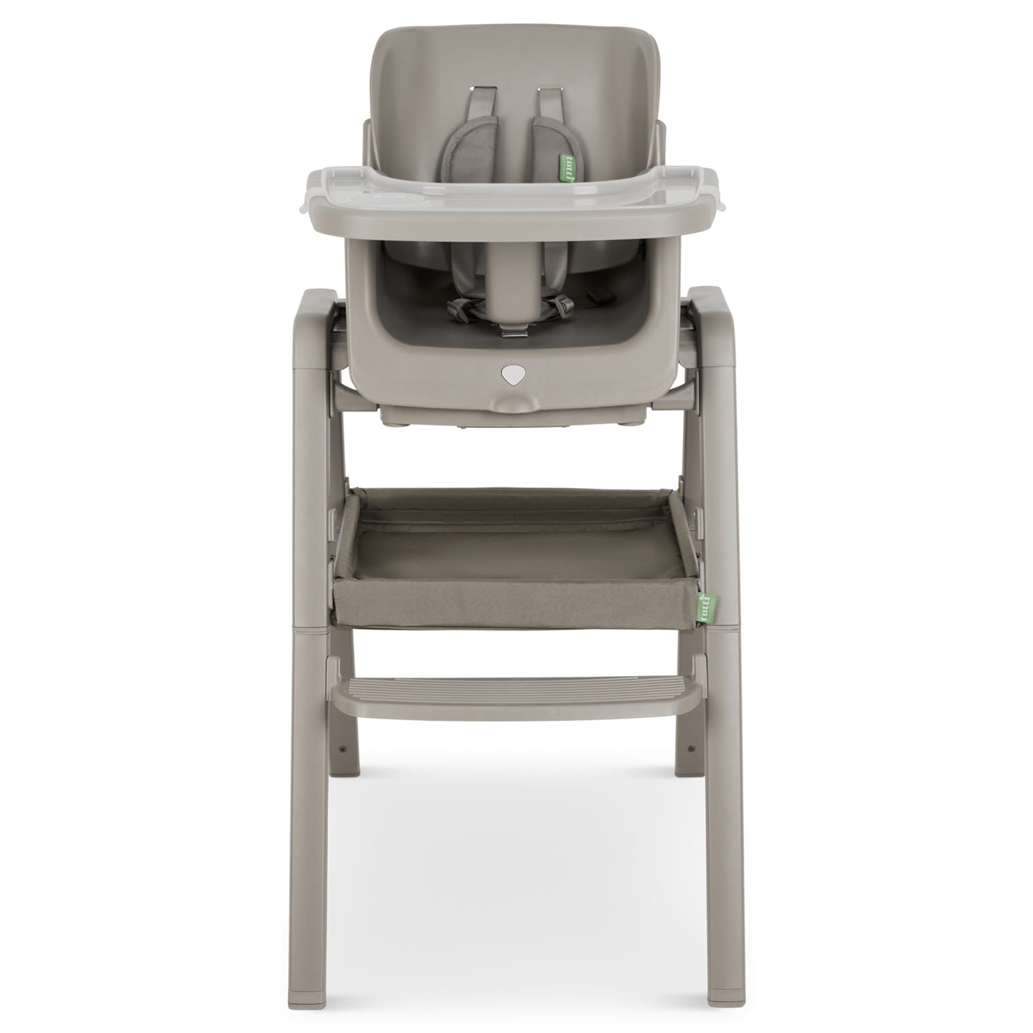 Care Instructions: Wipe legs and plastic components with a soft cloth and mild detergent; clean tray by wiping or in the dishwasher; spot clean fabric on the 5-point harness with mild detergent.