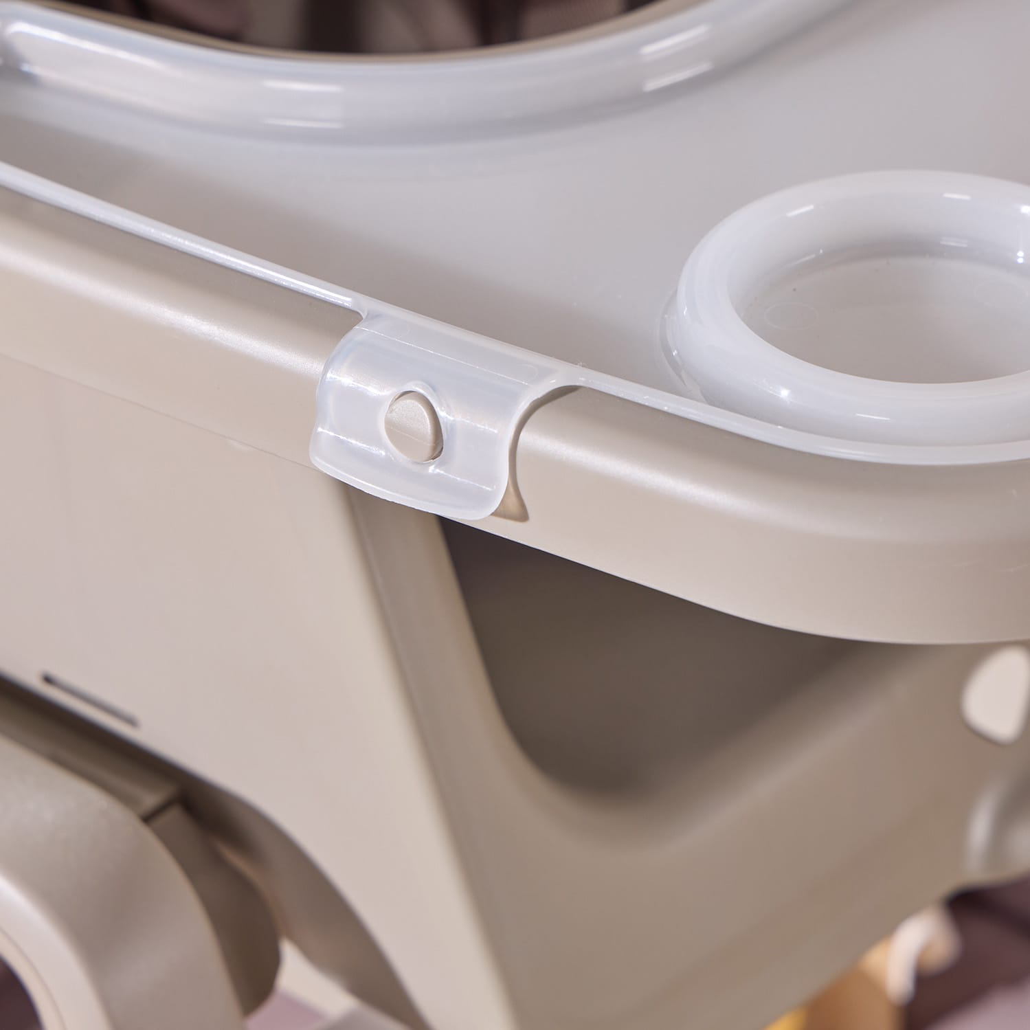 – Base & Components: Durable plastic, including tray, footrest, and 5-point harness buckle system; resistant to cracking and ageing.