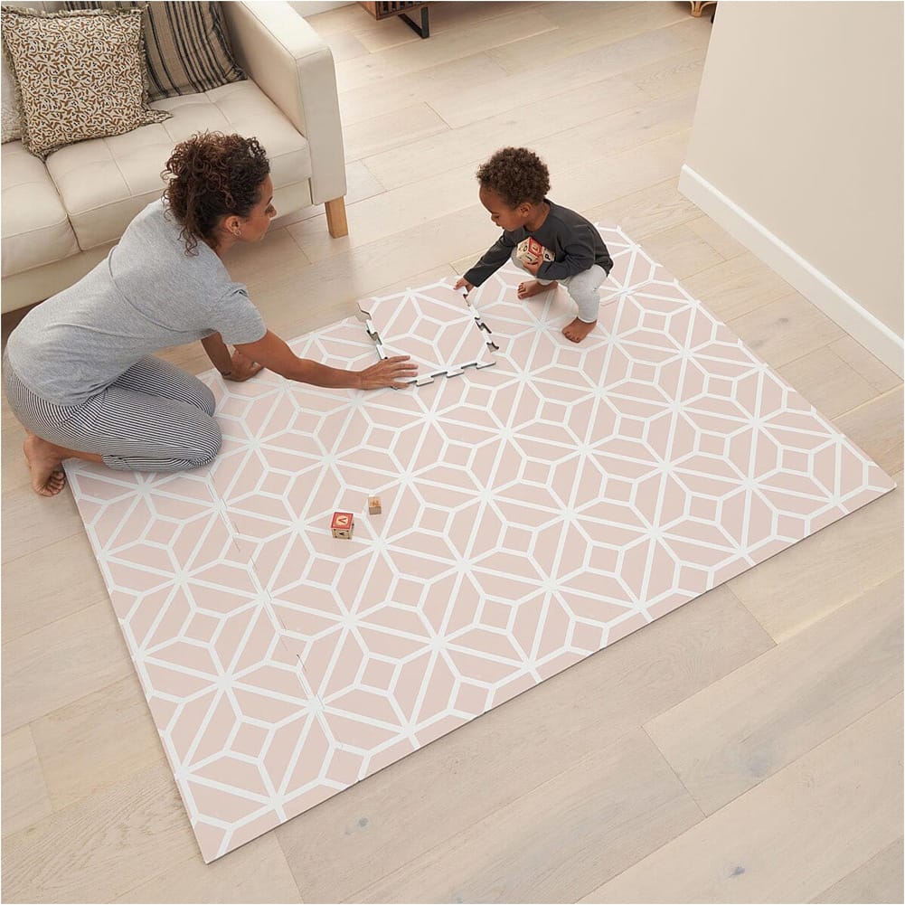 Perfect for any household with young children, our puzzle playmat seamlessly combines fun, education, and practicality. Featuring a stylish tile print in blush rose, it adds a modern touch to any home while providing a safe and non-toxic EVA foam playground for newborns and beyond.
