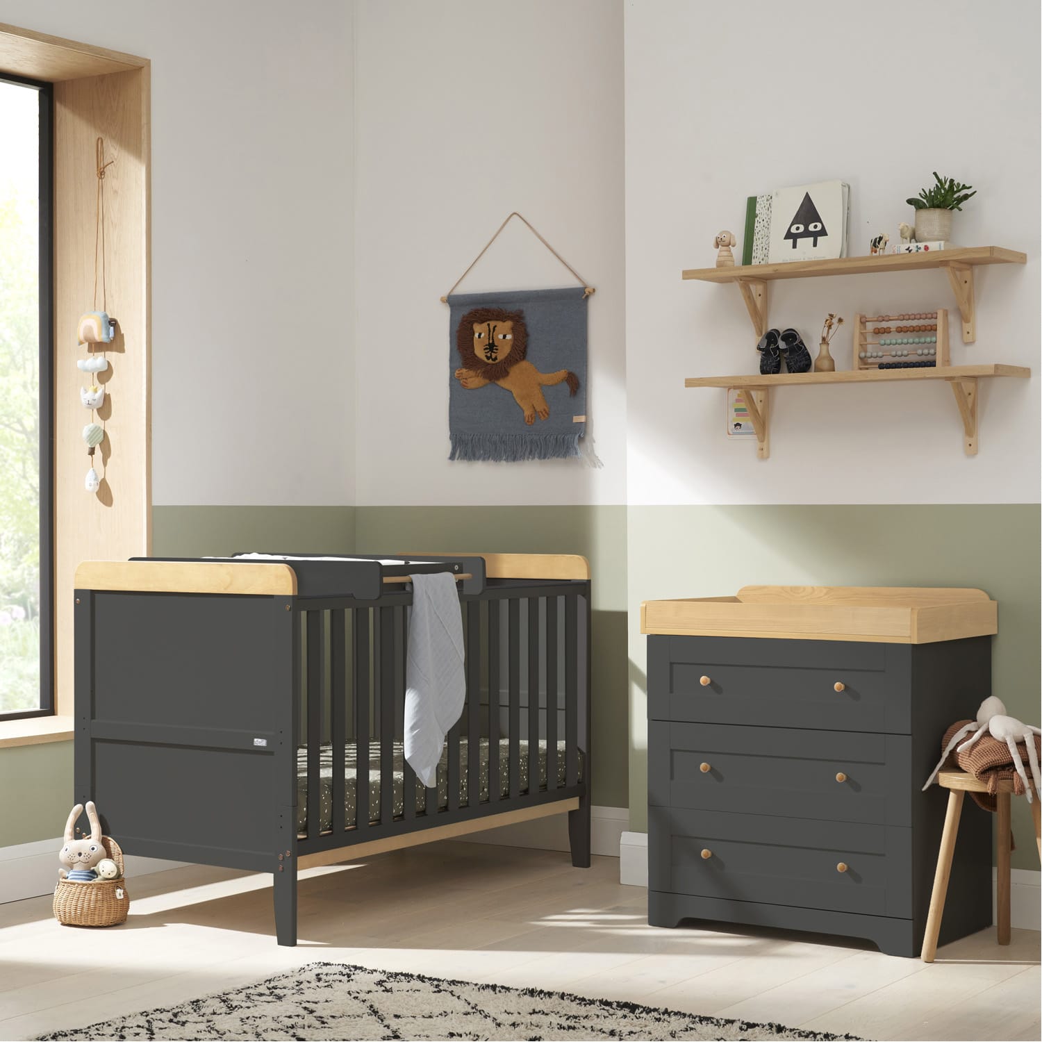 The Rio 2-Piece Room Nursery Furniture Set offers a stylish and affordable solution for your baby’s room. Featuring a full-size cot bed with three mattress height positions and protective teething rails, it adapts from birth to approximately six years. The included cot top changer provides a convenient space for nappy changes, while the chest of drawers offers ample storage for essentials. This set combines practicality and comfort, making it a perfect choice for modern nurseries.