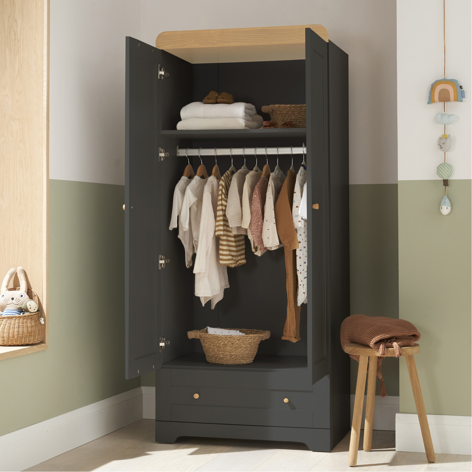 • Wardrobe features a full width drawer and hanging rail plus a handy shelf so plenty of storage space