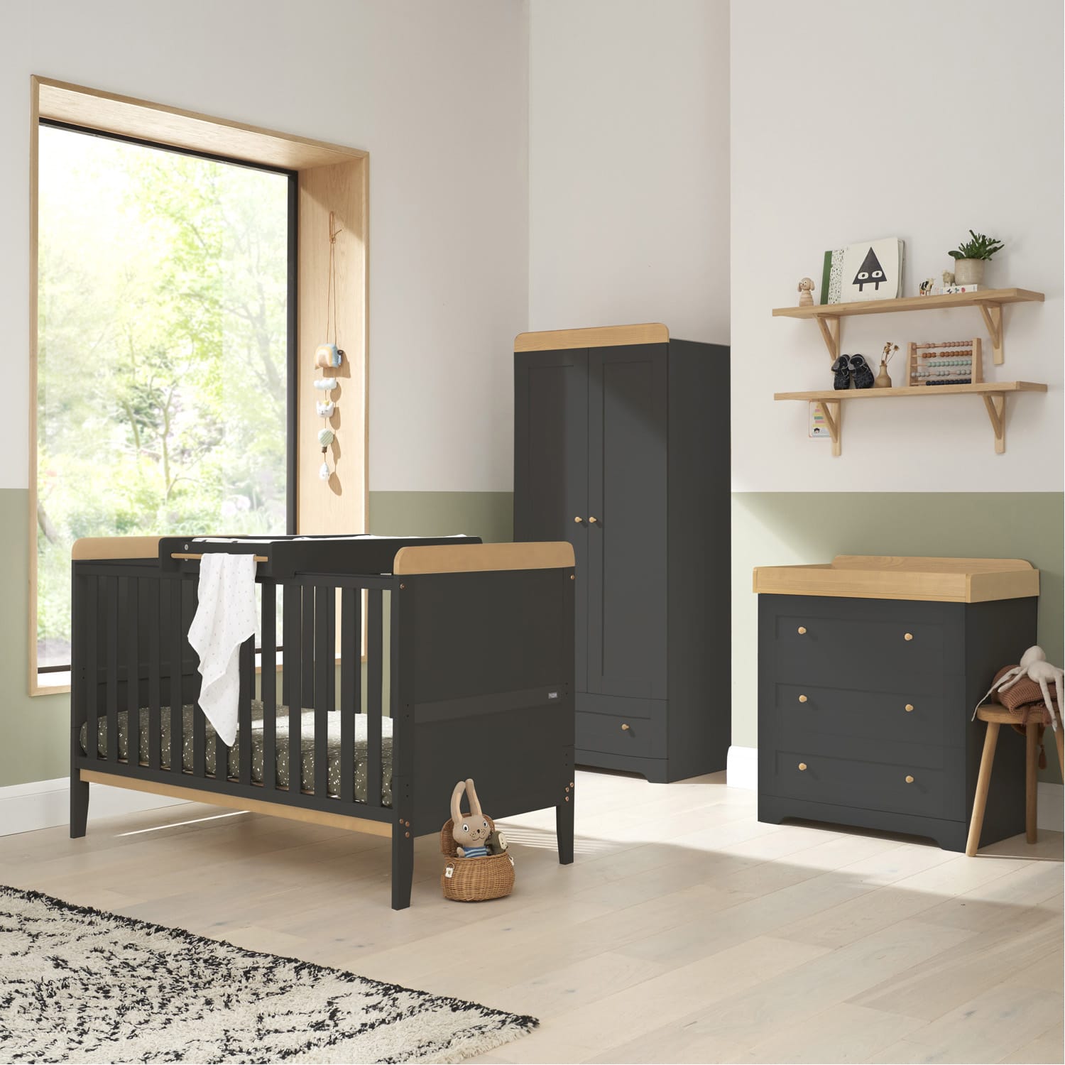 Tutti Bambini Rio 3 Piece Room Set – Slate Grey/Honey Oak