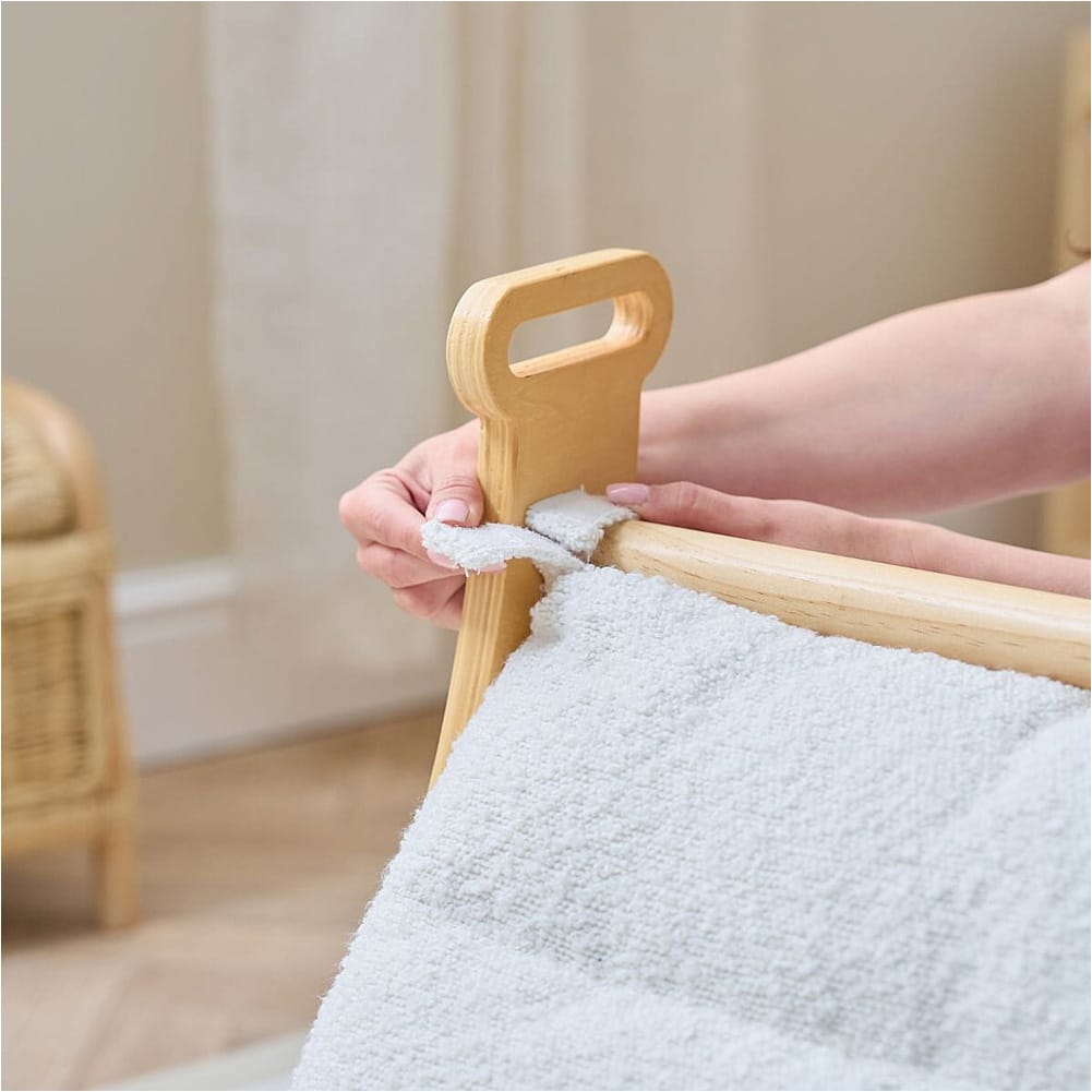 The Tutti Bambini Scala Montessori Pikler Rocking Frame Cushion is designed to complement the Montessori Pikler Climbing Set, offering extra comfort for little ones during play. It attaches securely to the Pikler Arch with convenient Velcro straps, creating a cosy, cushioned surface for rocking, climbing, and exploring. Ideal for enhancing safe and sensory play, this cushion encourages toddlers to develop balance, motor skills, and confidence in a supportive environment. A great addition to expand the versatility of your Pikler play setup.
