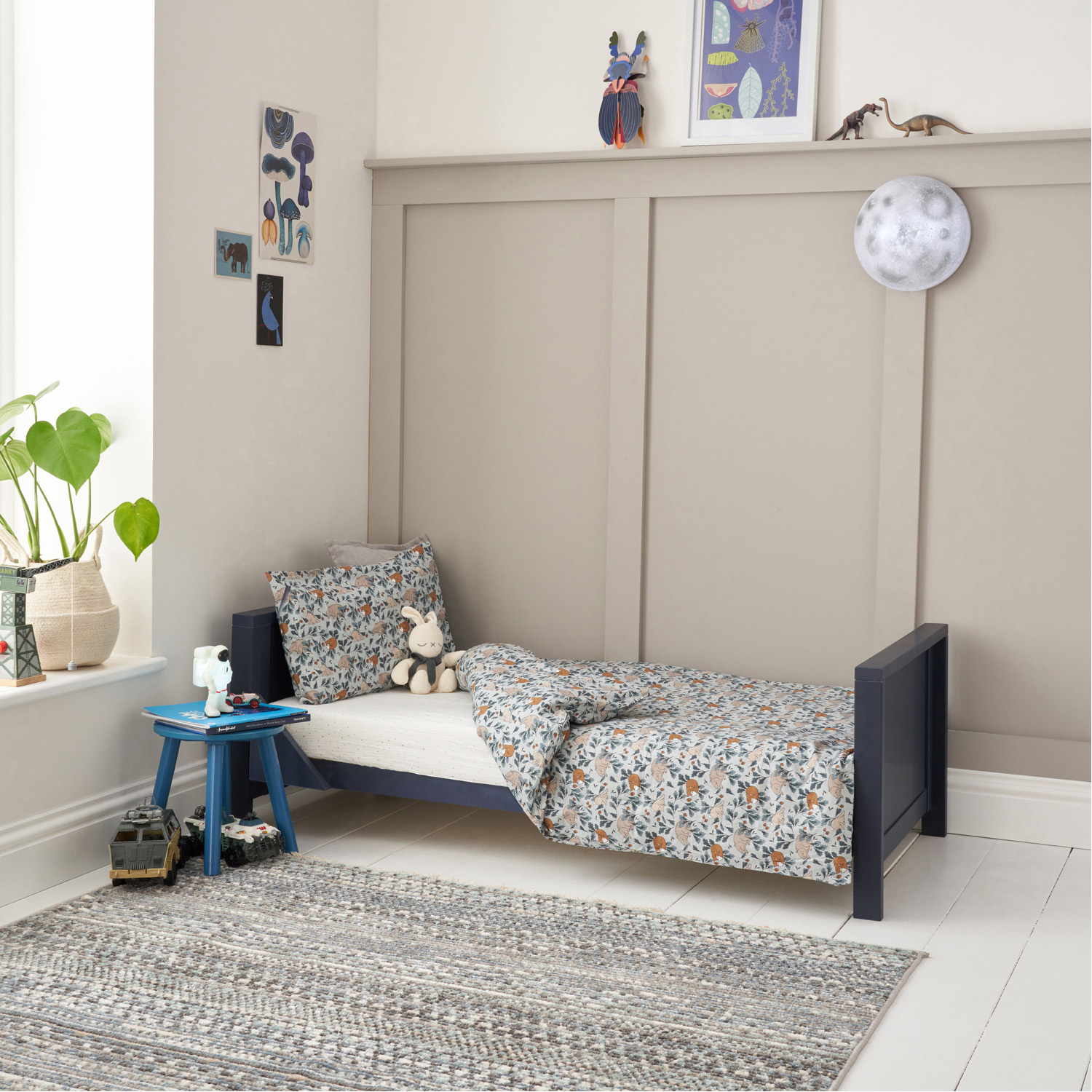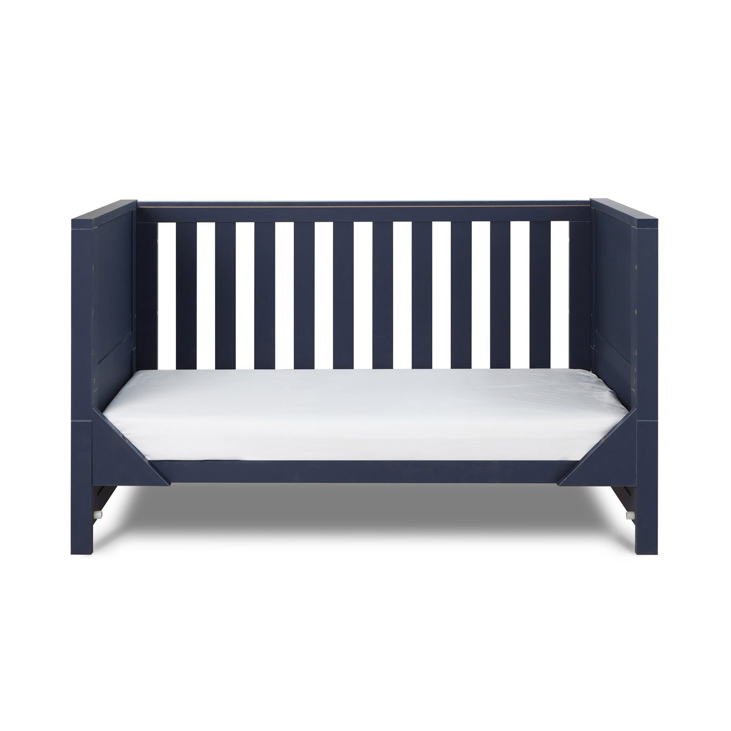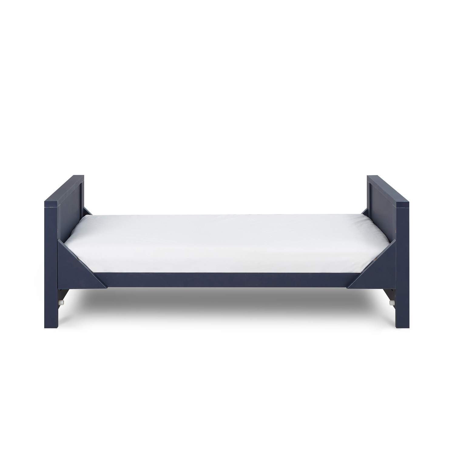 Combining a chic silhouette with functional features, the Tivoli Cot Bed in Navy offers a snug and inviting sleep environment for your child. Its versatile design includes three adjustable mattress height positions and it seamlessly transforms into a toddler bed or sofa bed, providing adaptability as your child grows.
