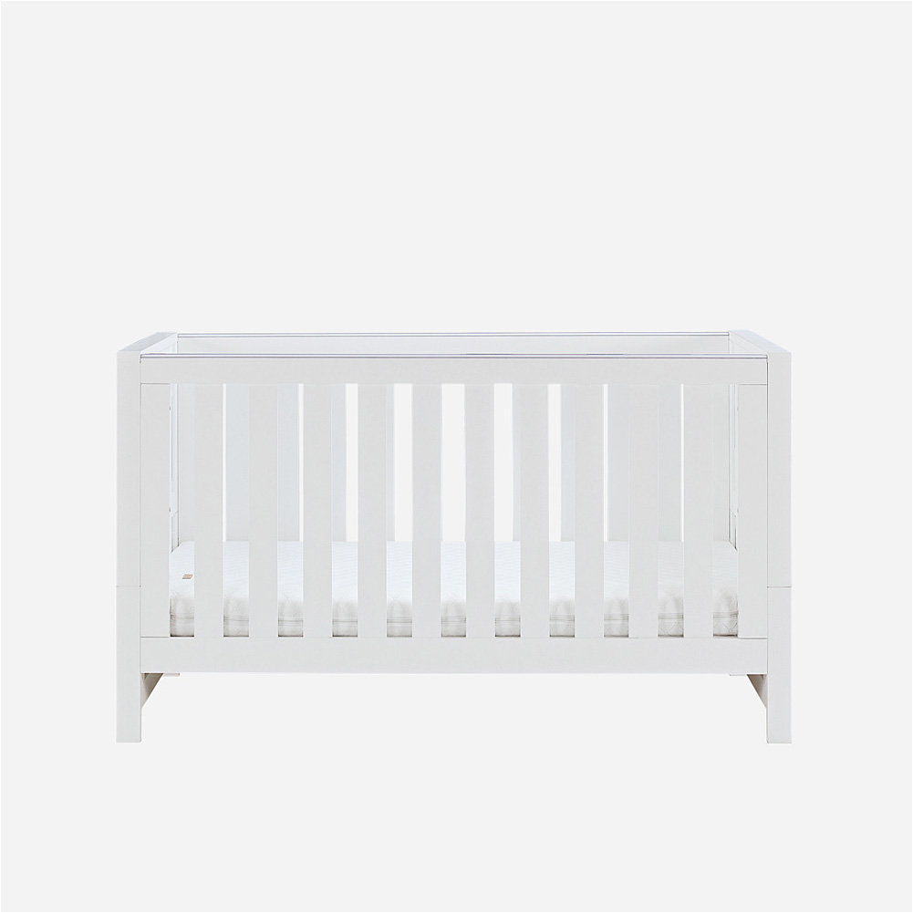 Combining a chic silhouette with functional features, the Tivoli Cot Bed in White offers a snug and inviting sleep environment for your child. Its versatile design includes three adjustable mattress height positions and it seamlessly transforms into a toddler bed or sofa bed, providing adaptability as your child grows.