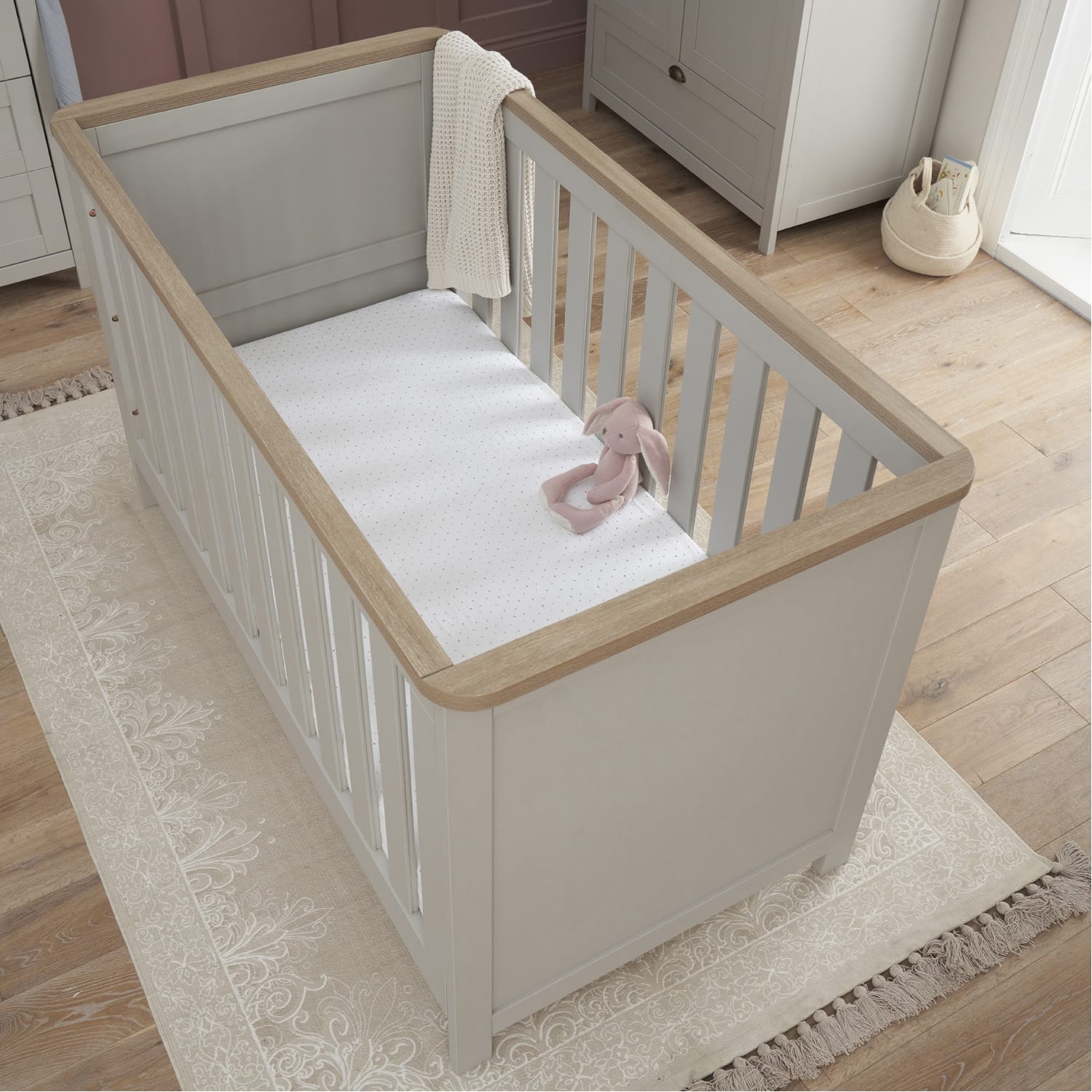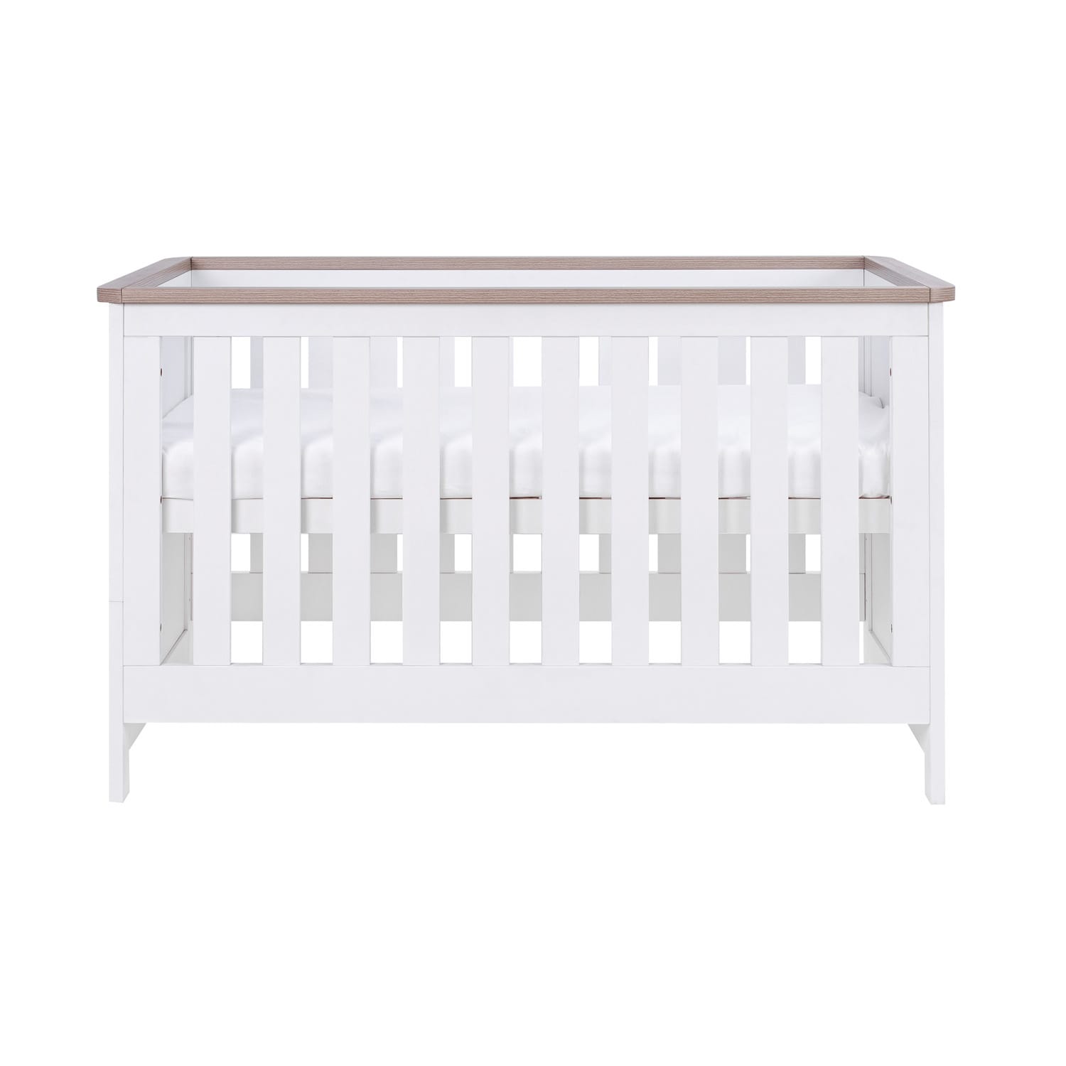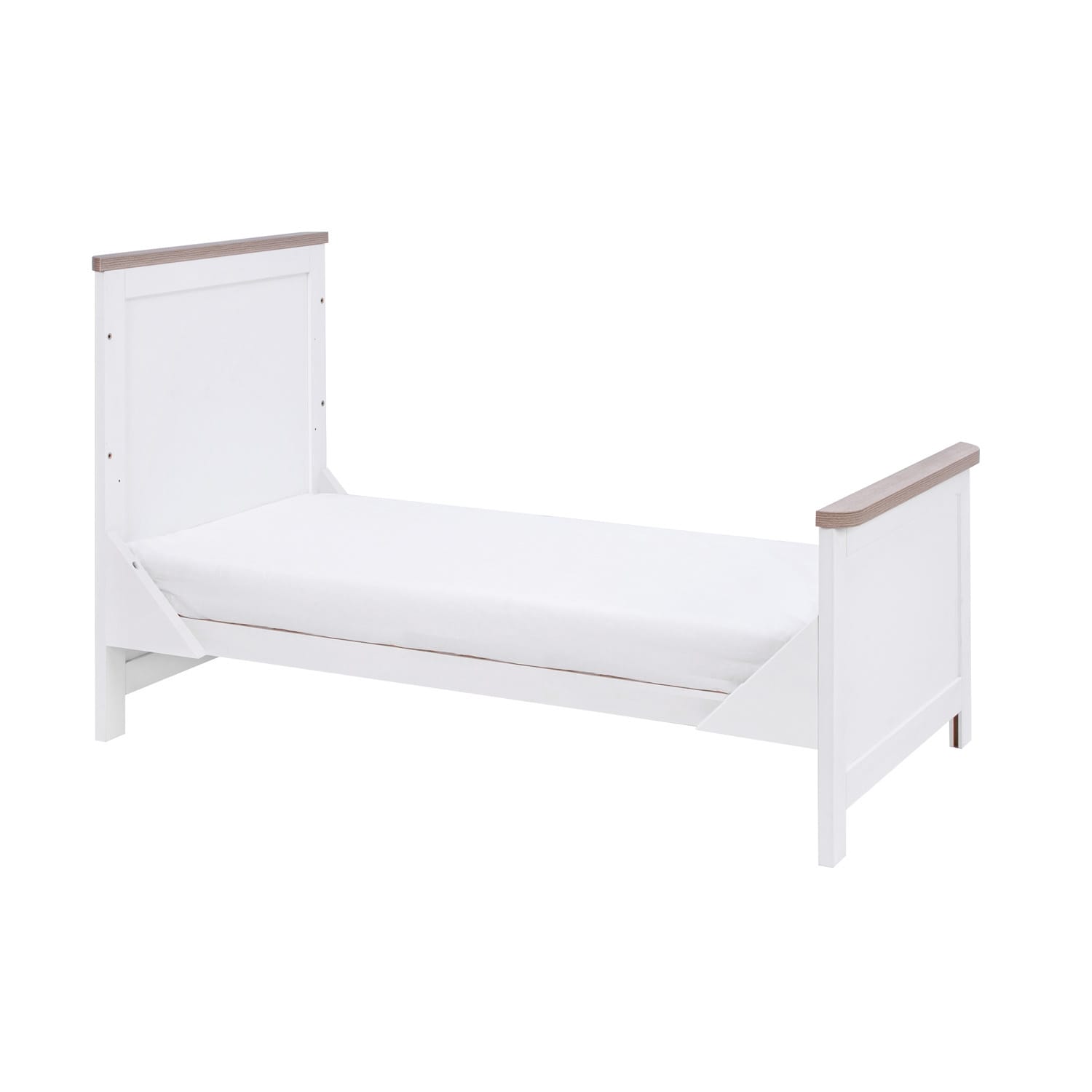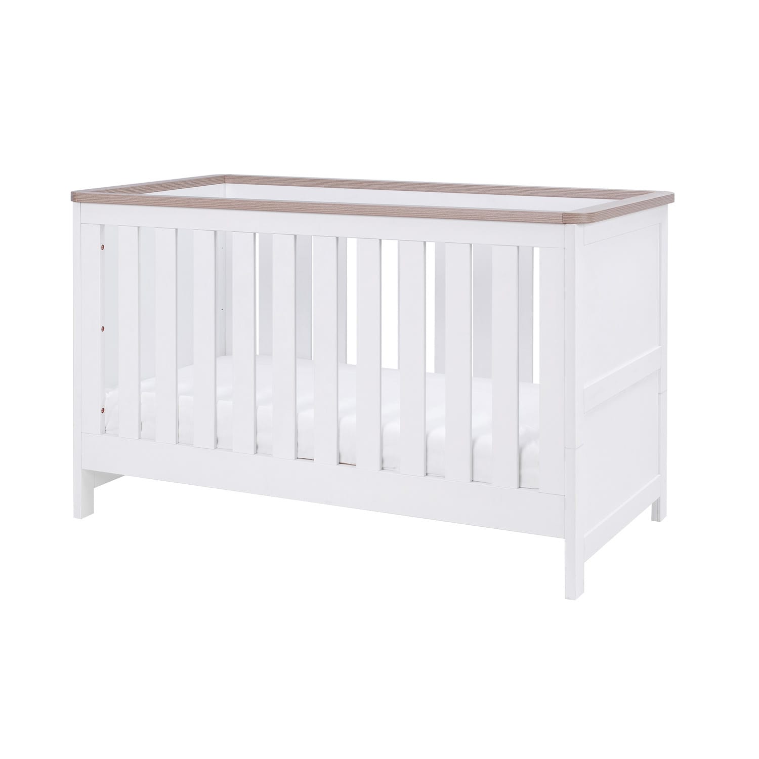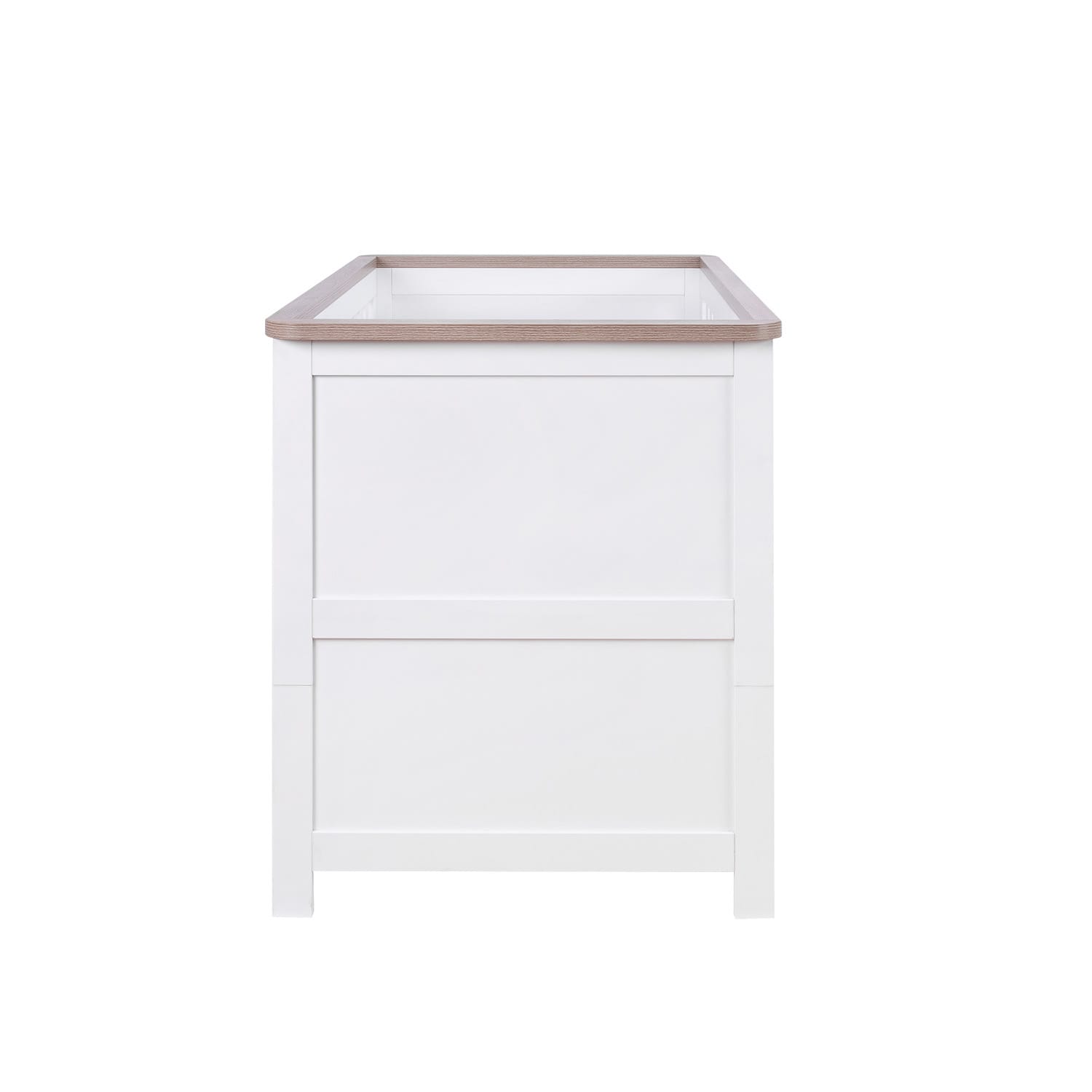 Designed with clean lines and finished in White and Oak, the Verona Two Piece Nursery Room Furniture Set promises a beautiful traditional look for your nursery. The shaker style chest changer features a fully removable changing top and the matching cot bed converts to junior bed and day bed, making this nursery set suitable for years to come.