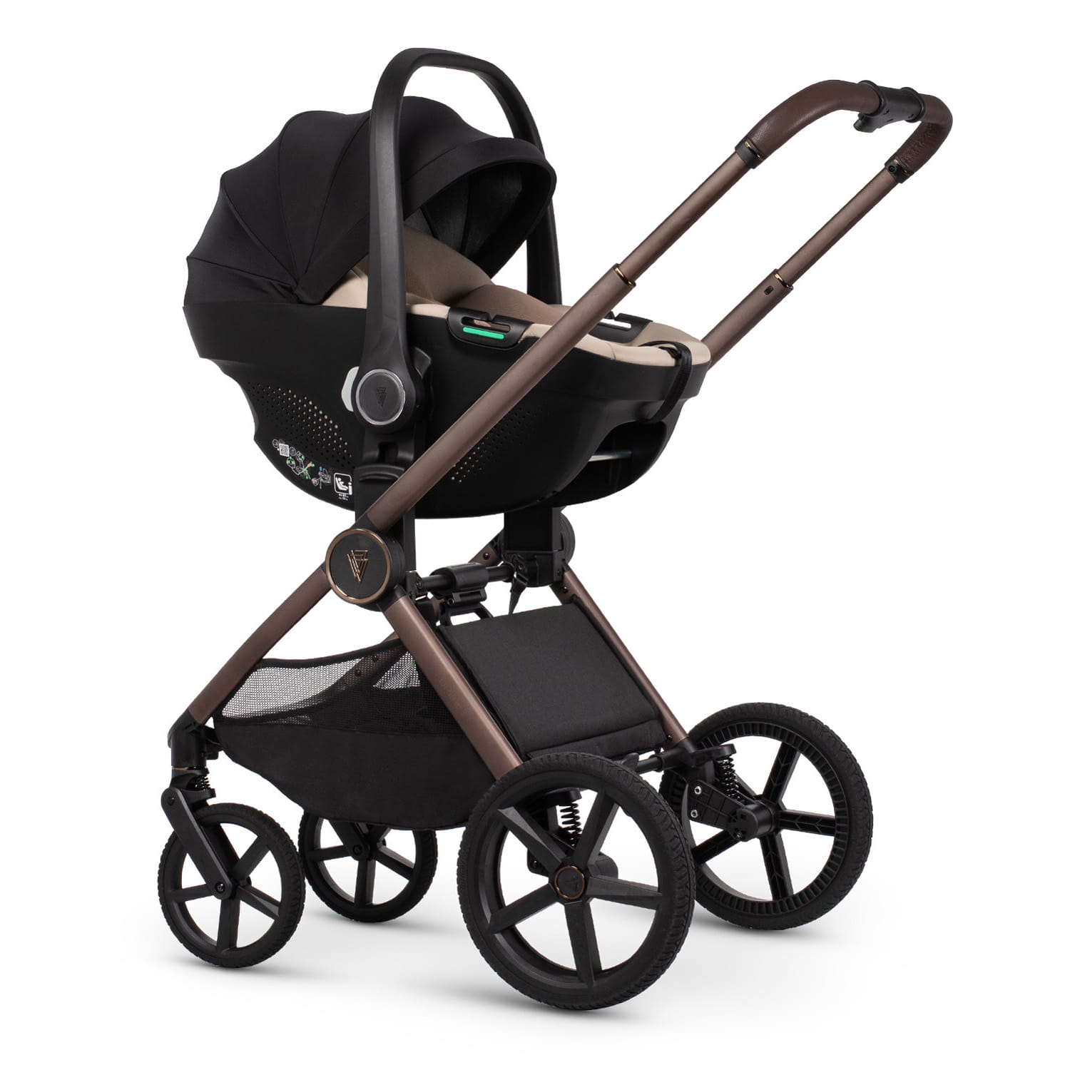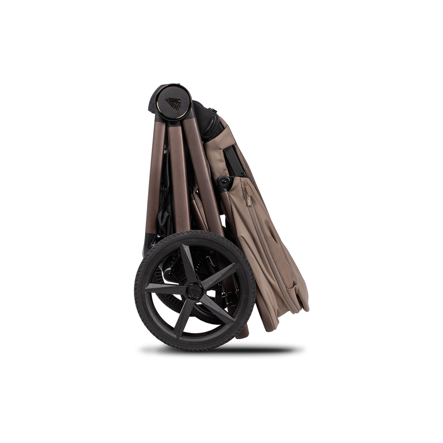 Built around an ultra-lightweight frame made from durable aluminium, weighing just 5.9 kg. We’ve added a handy integrated strap, making it easy and comfortable to carry when folded. Paired with the folding carrycot and ergonomic seat, it creates a practical, intuitive set that fits perfectly into a busy, on-the-go lifestyle.
